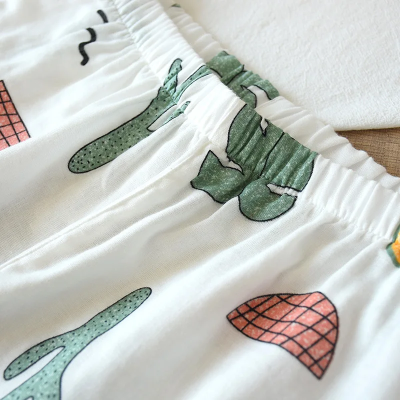 Новинка 100% хлопковая Марля женские пижамные шорты с мультяшным пр...