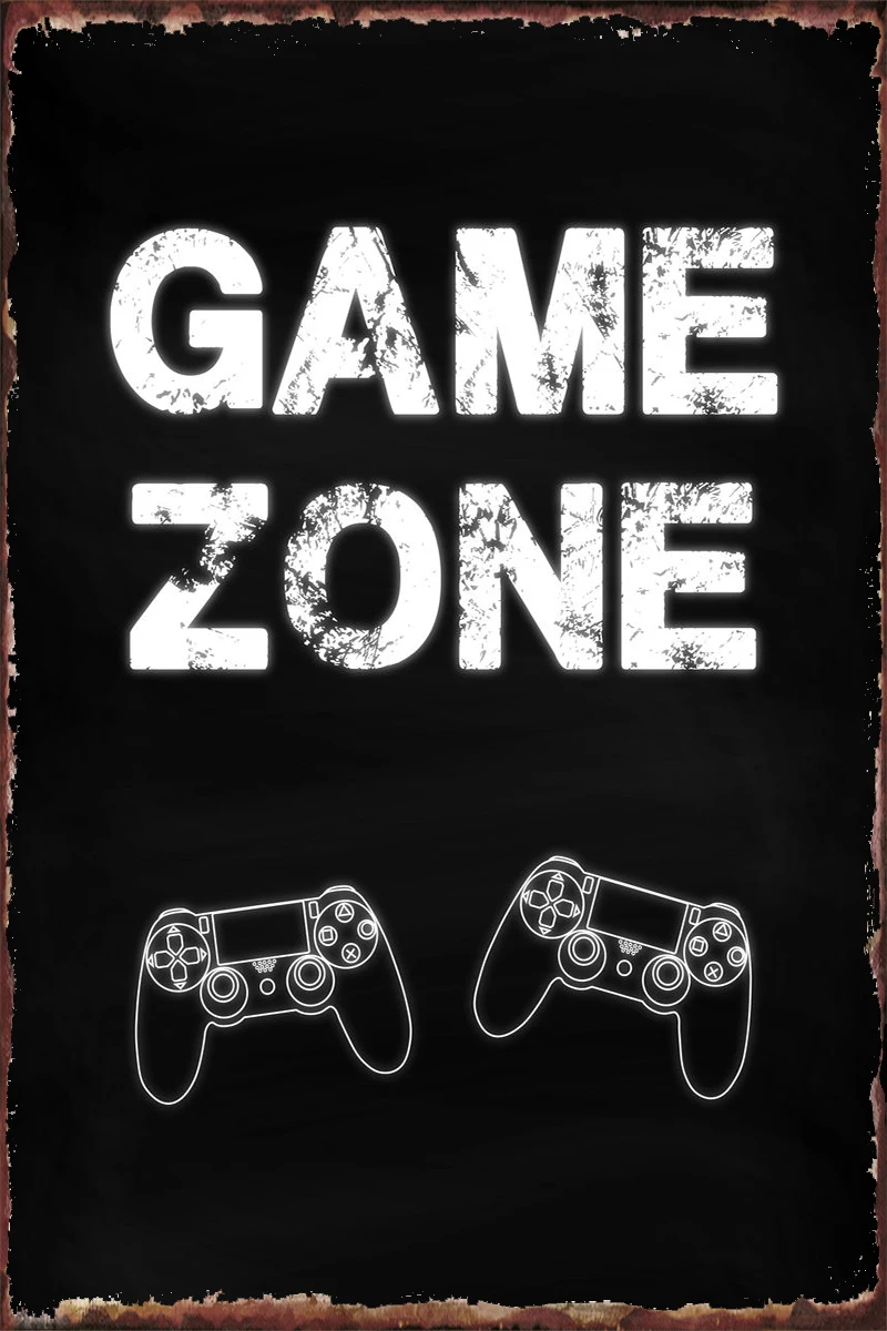 Игровая зона, геймерская металлическая вывеска, жестяная вывеска, о...