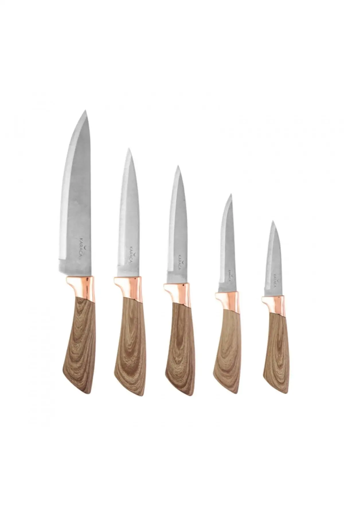 Кухонные инструменты 5 шт. набор кухонных ножей Универсальный Кливер шеф-повар подставка для ножей для хлеба коричневого цвета