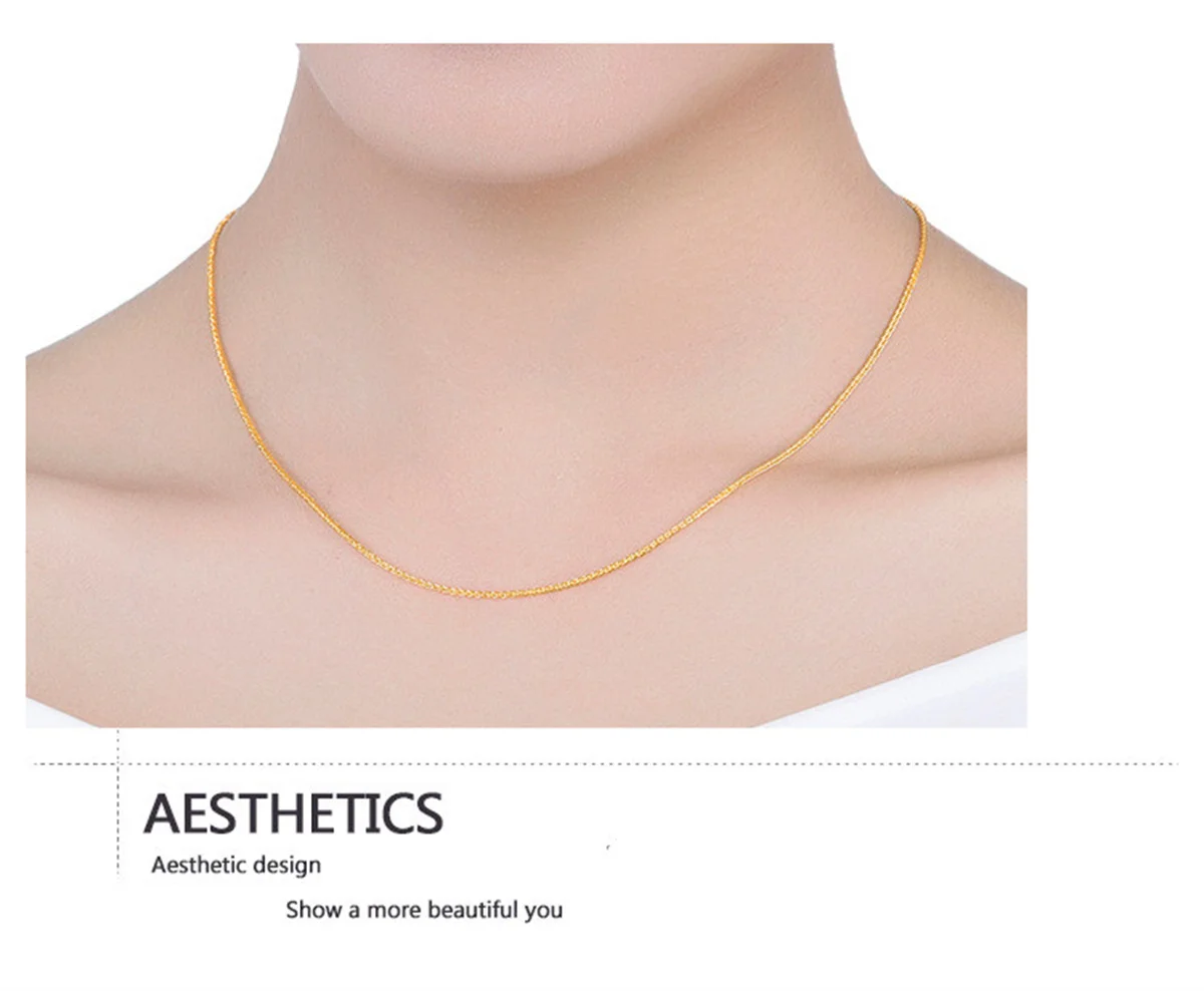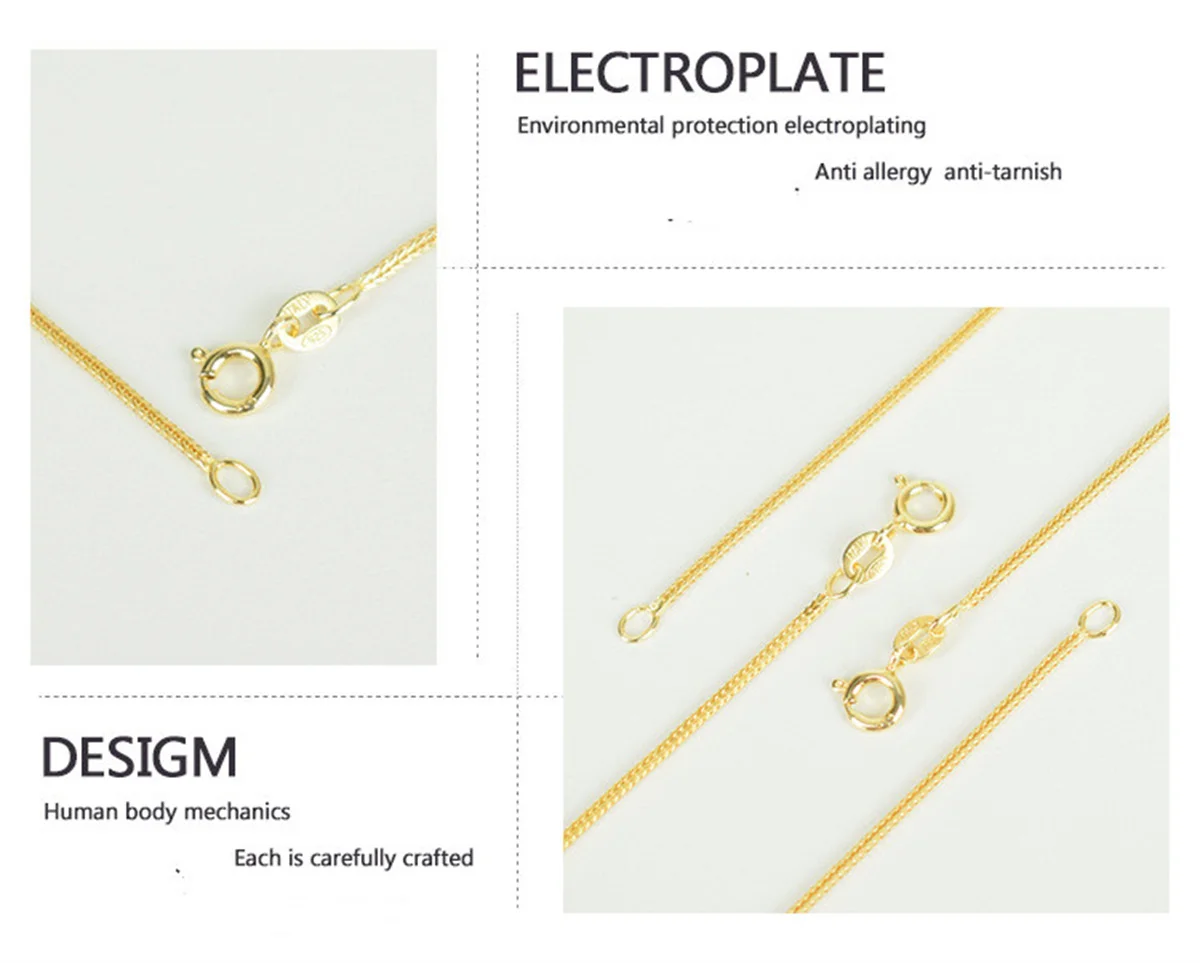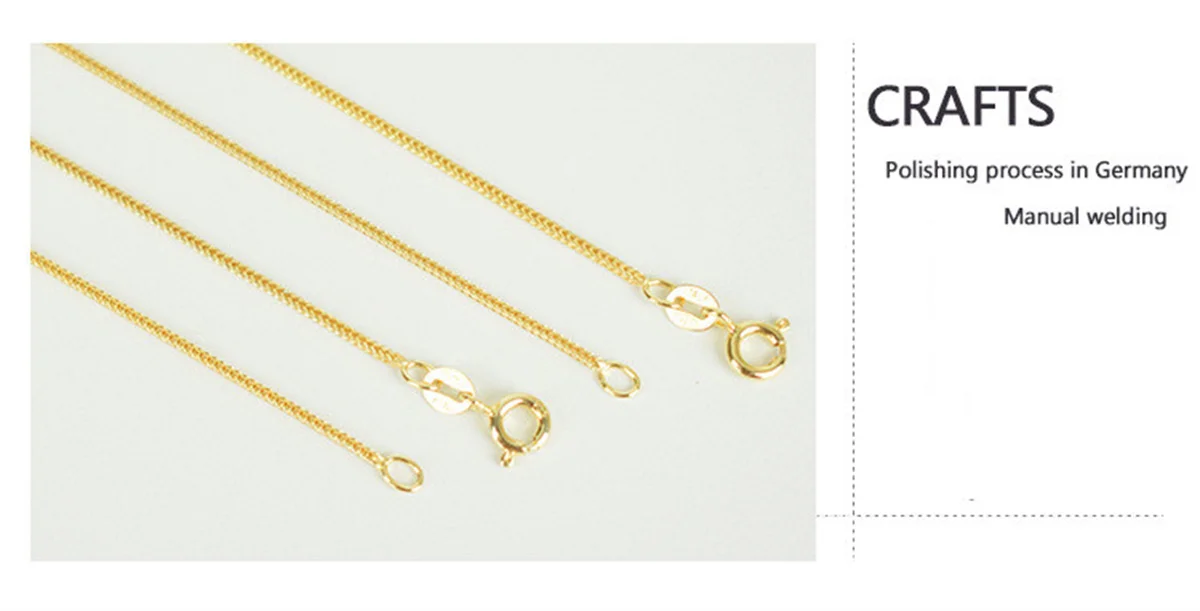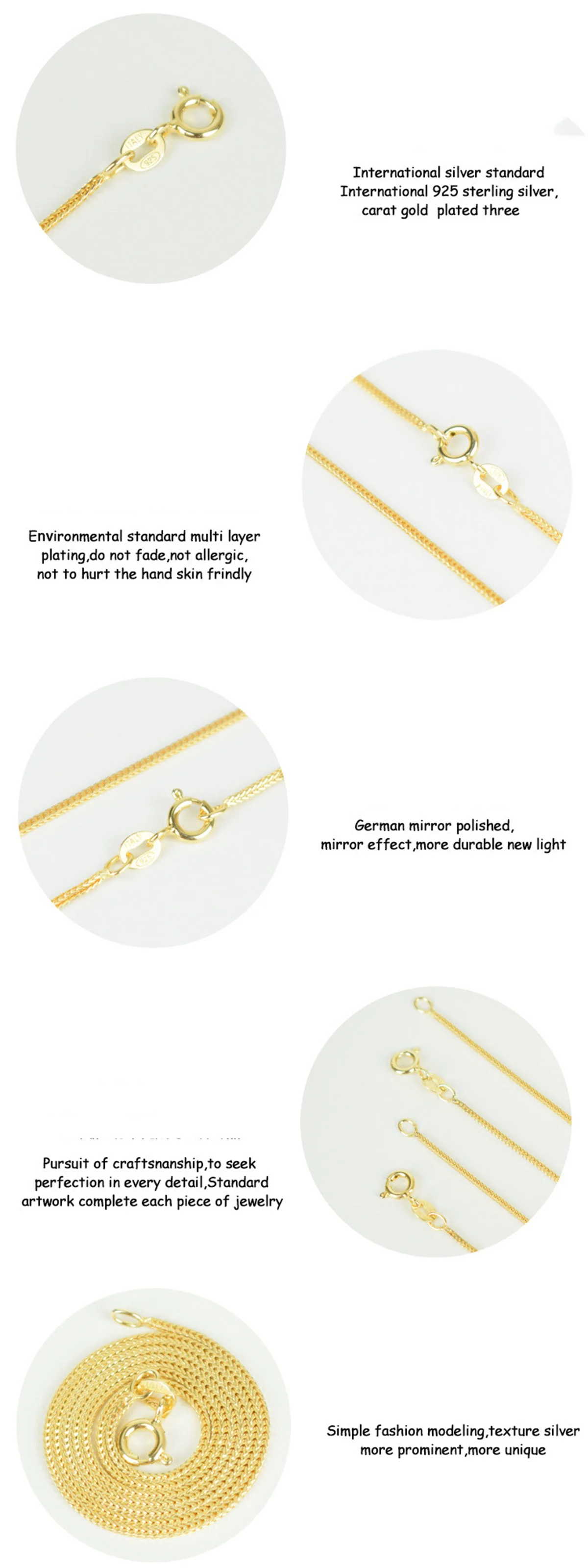Материал: Стерлинговое Серебро 925 пробыТолщина: около 1,0 ммДлина: 40 см/45 смВес: около 2,3 г (40 см)Обработка поверхности: три слоя золота гальваника