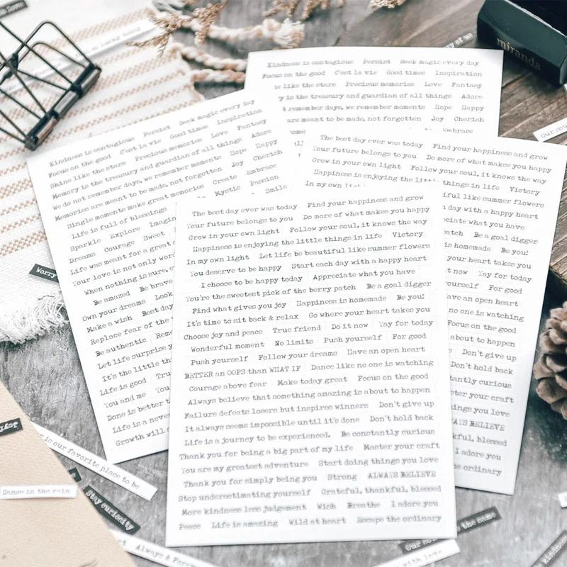 8 листов черно-белых слов, наклейки с фразой, журнал, планировщик, ...