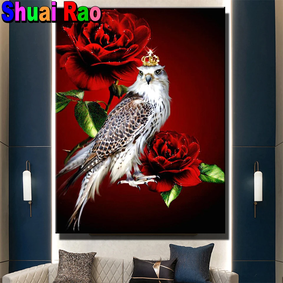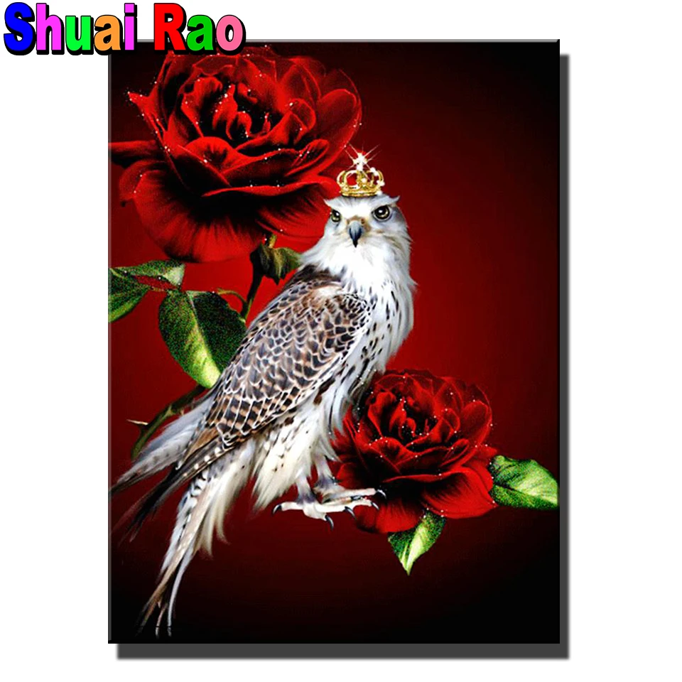 100% полная круглая 5D алмазная живопись сделай сам, птица и розы, вышивка стразы, алмазная живопись, вышивка крестиком, мозаика