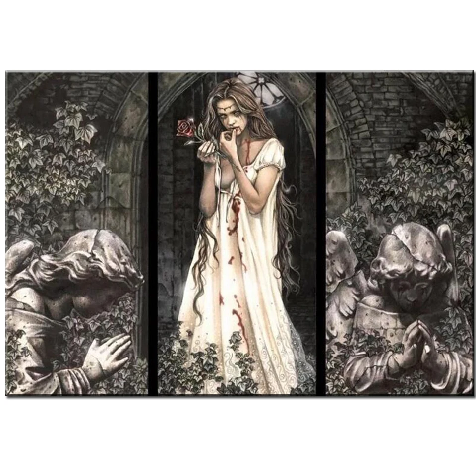 Алмазная 5d Вышивка сделай сам, роза, девочка-вампир, детская Алмазная мозаика, полноразмерная, круглая, сверло, Темный мир, девочка, подарок 2021, N2389