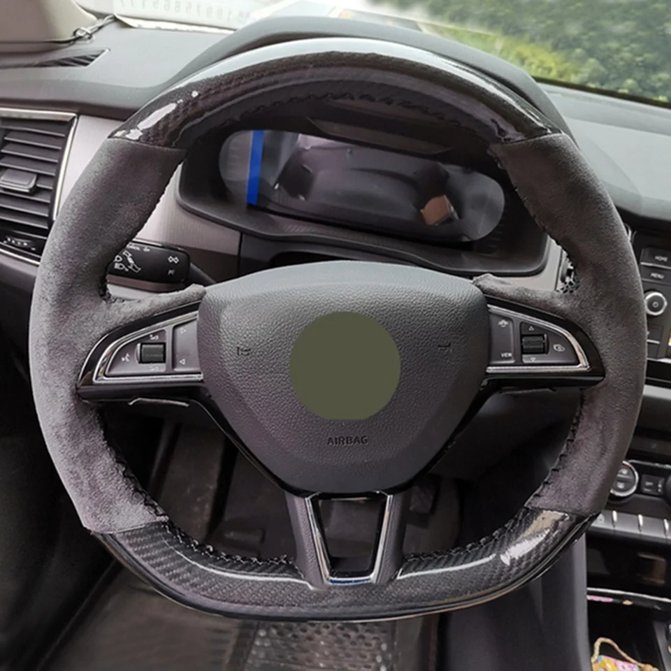 Чехол рулевого колеса автомобиля черная замша из углеродного волокна для Skoda Octavia RS Citigo Fabia Scala Karoq Kodiaq Citijet Superb 2015-2019