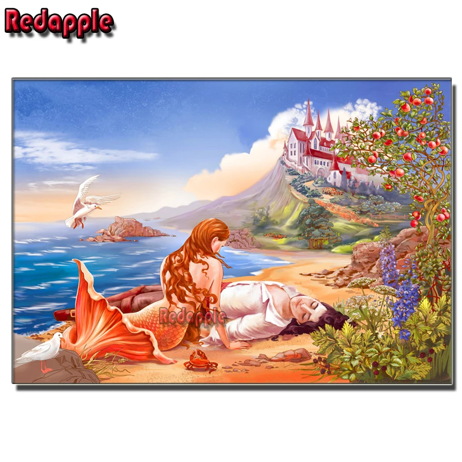 Алмазная мозаика сделай сам, Алмазная мозаика с изображением пар русалок, замок, полноразмерная мозаика для фруктовых деревьев, Приморского побережья, чайки, вышивка Стразы