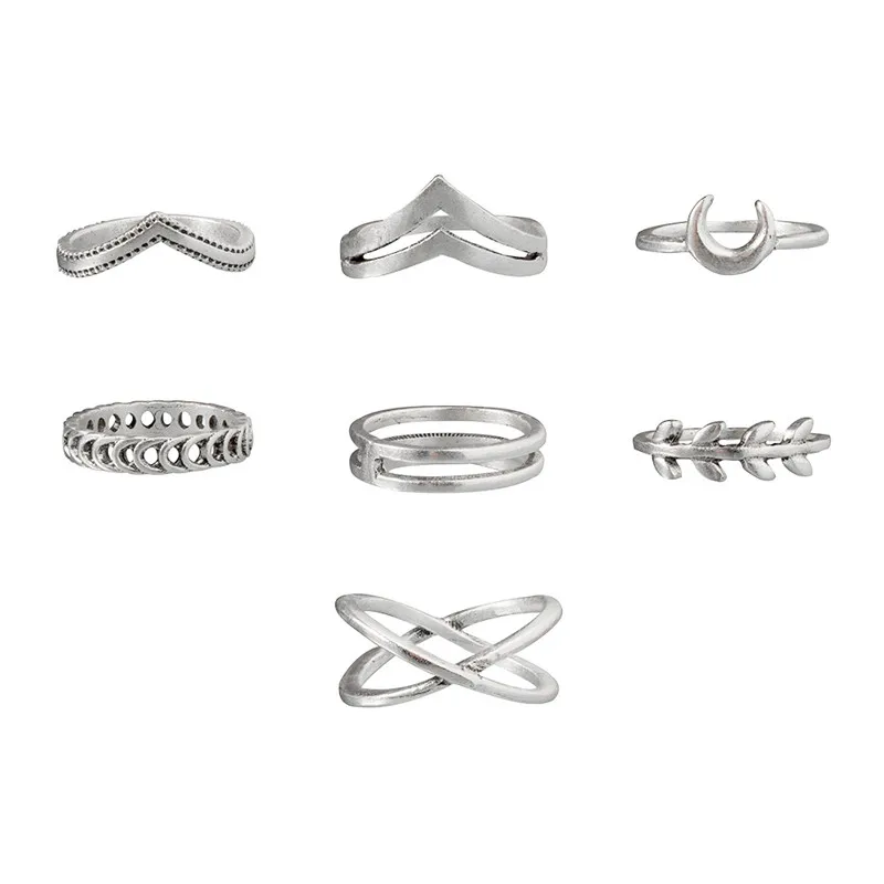 Модные кольца в виде листьев Луны и Полумесяца для женщин, античные кольца в стиле панк, кольца миди, набор винтажных украшений, аксессуары 7 шт.компл.