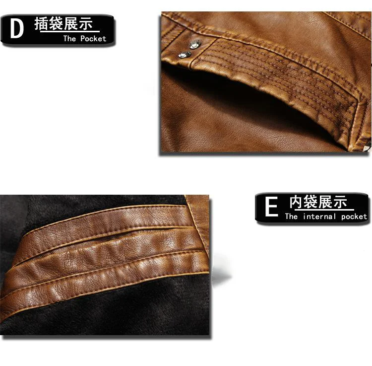 Куртка мужская из искусственной кожи, Осень-зима, для среднего и пожилого возраста, с круглым вырезом, утепленная, мотоциклетная, модная