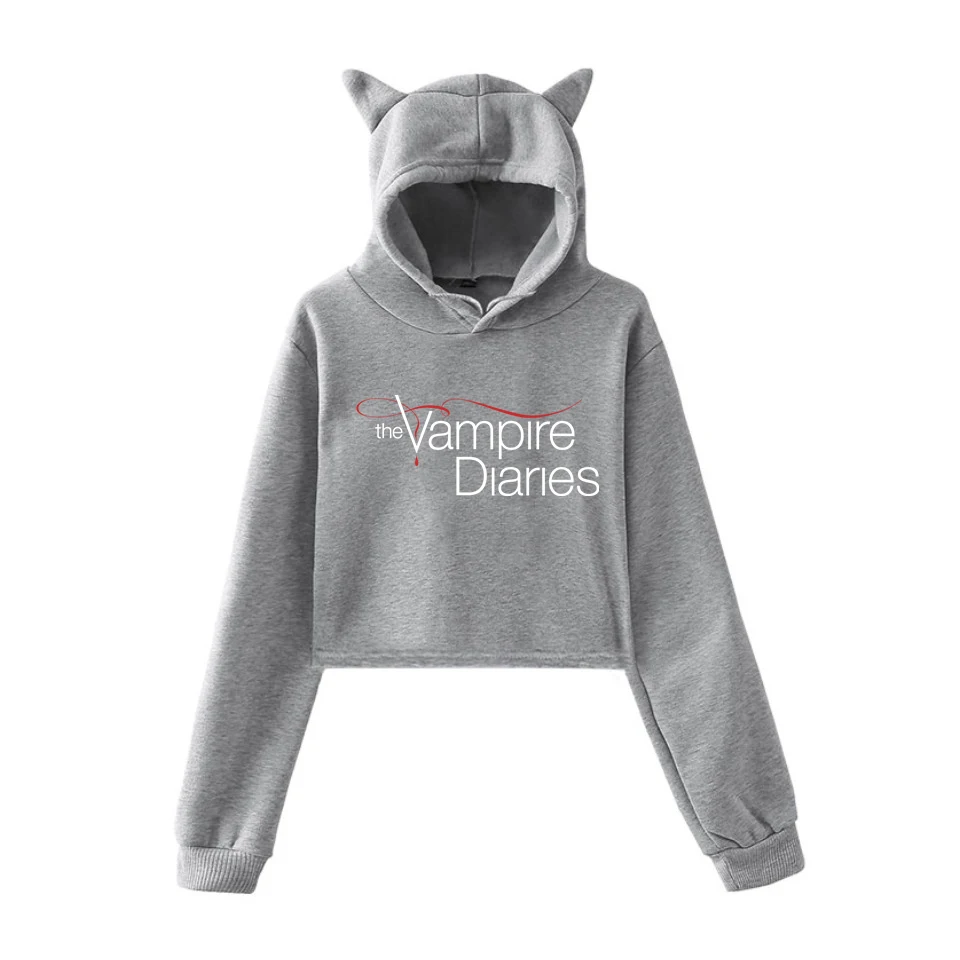 Свитшот с изображением дневников вампира, Женская толстовка, Розовый пуловер, одежда для девочек, уличная одежда, весенний кроп-топ с длинным рукавом, толстовки