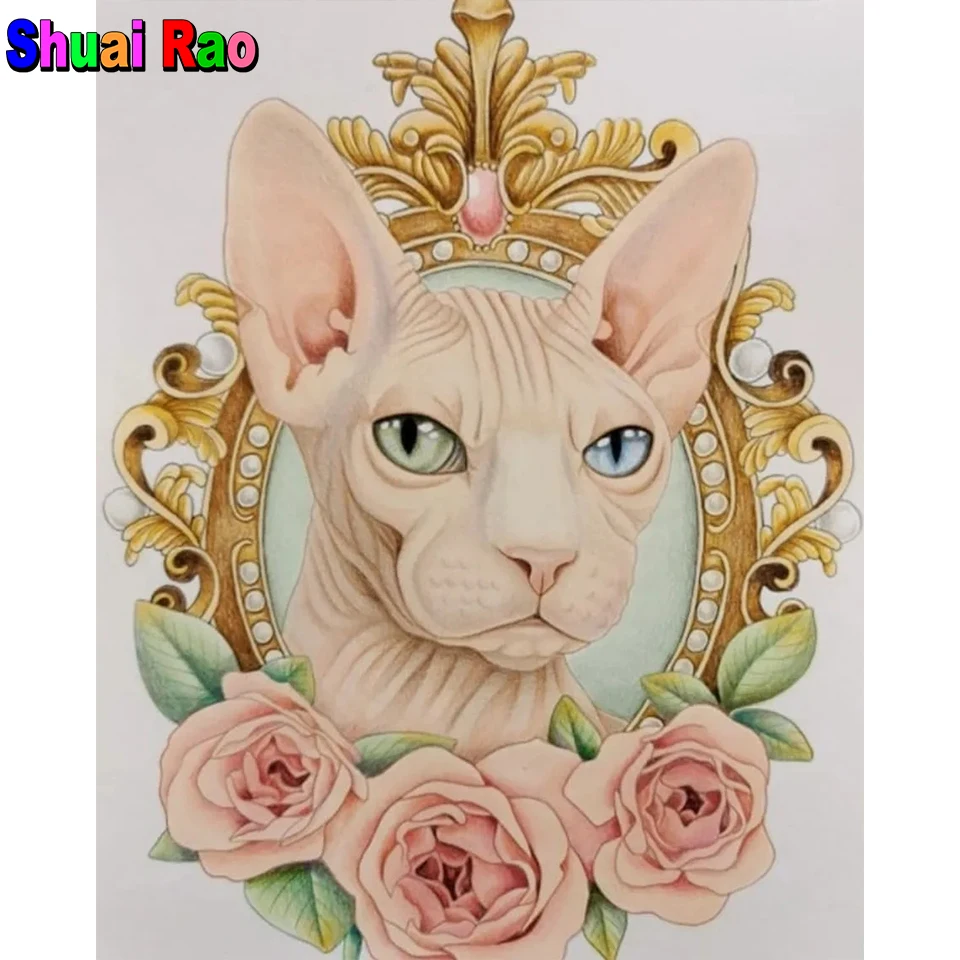 Sphynx Кот искусство цветок DIY алмазная живопись вышивка крестиком Мозаика полная дрель Алмазная вышивка 5D ручная работа детский подарок Настенный декор