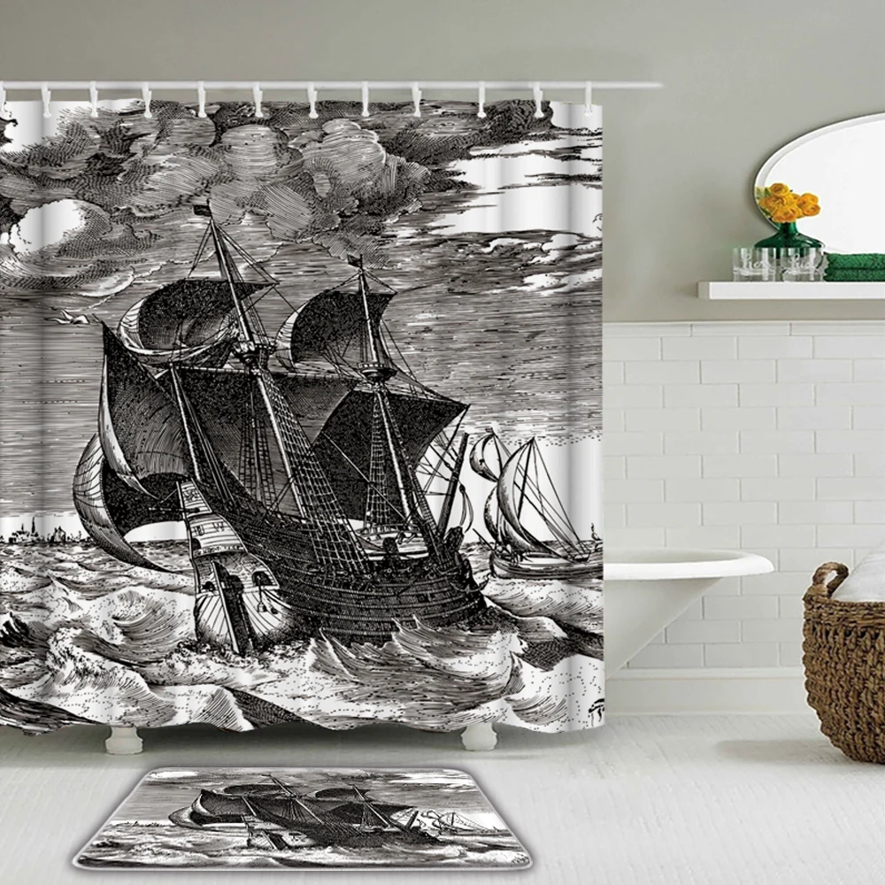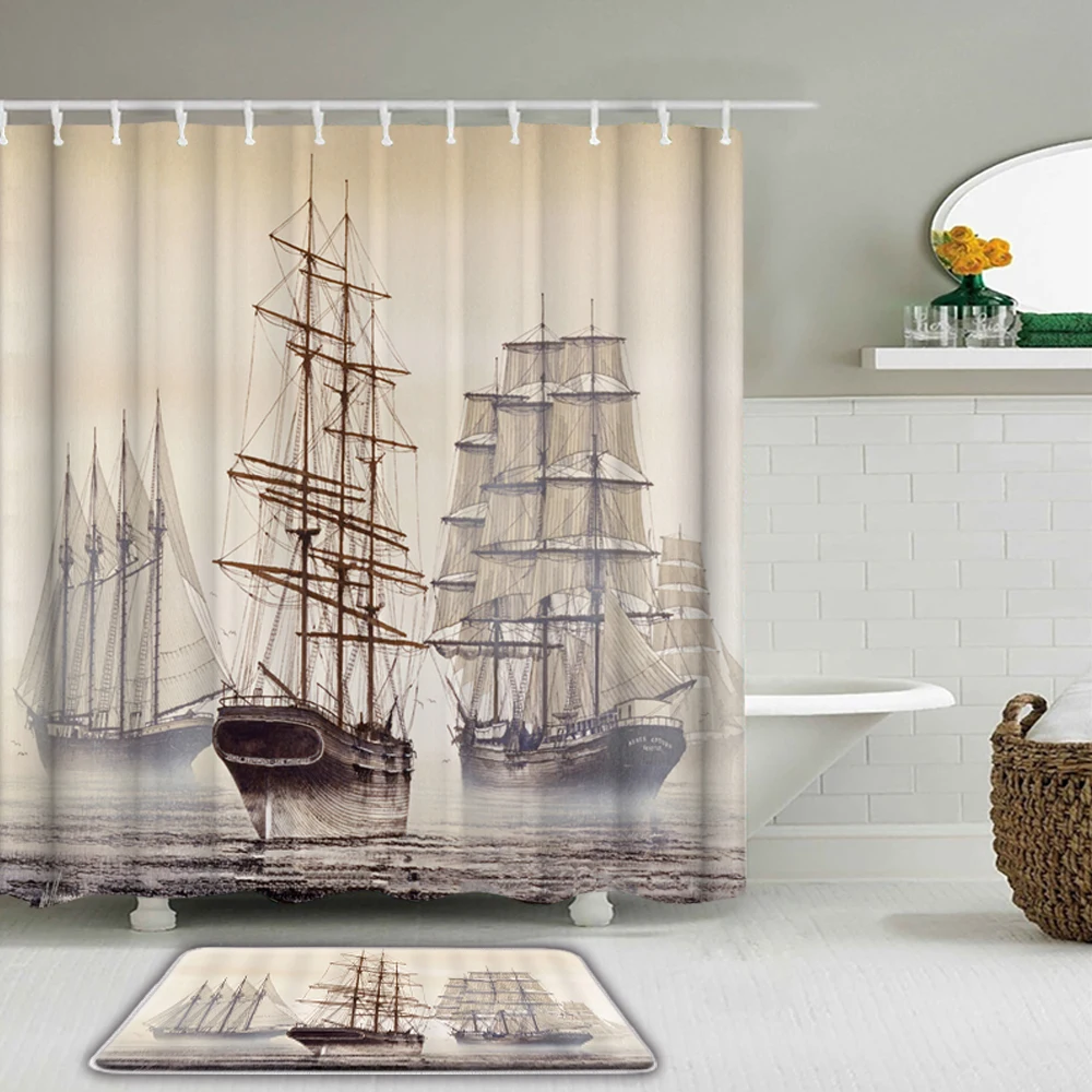 Занавеска для душа EDOMGNIH, винтажная занавеска для душа с узором ...