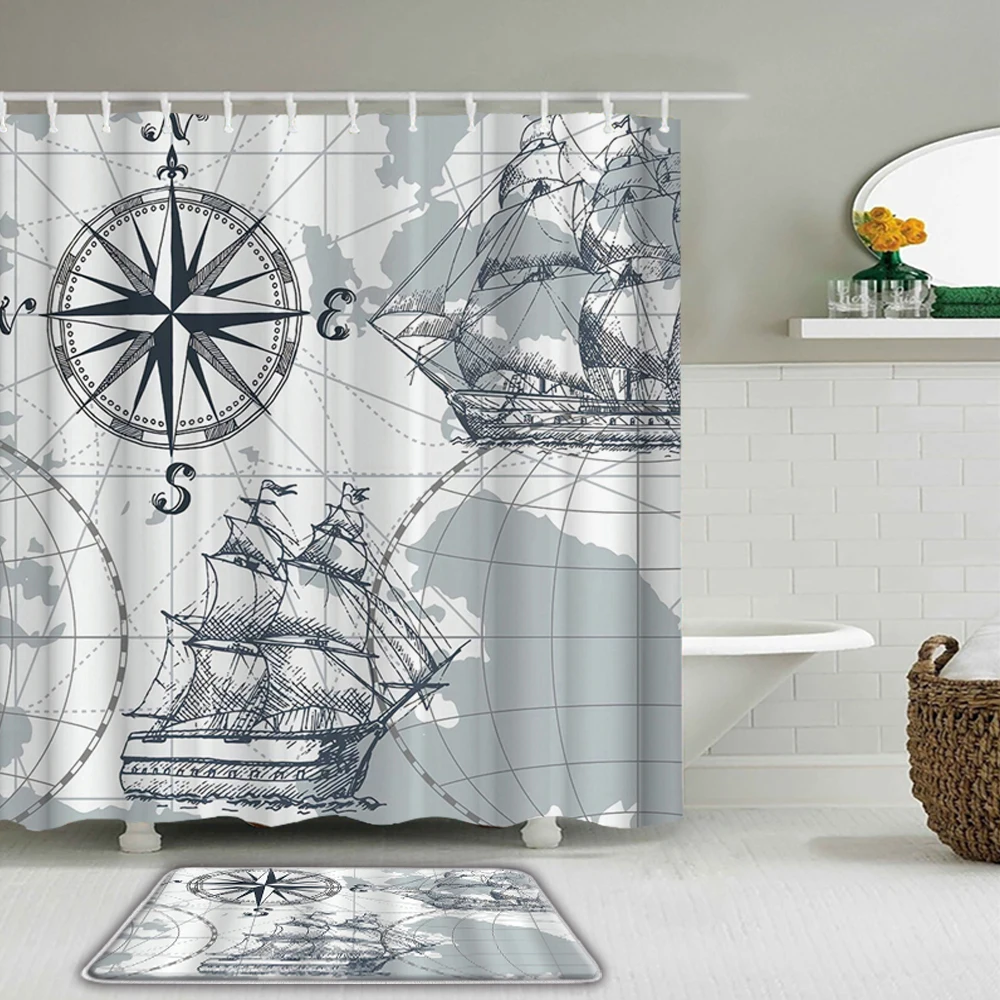 2 шт.компл., ретро-занавеска для душа с картой мира в Европе, Детск...