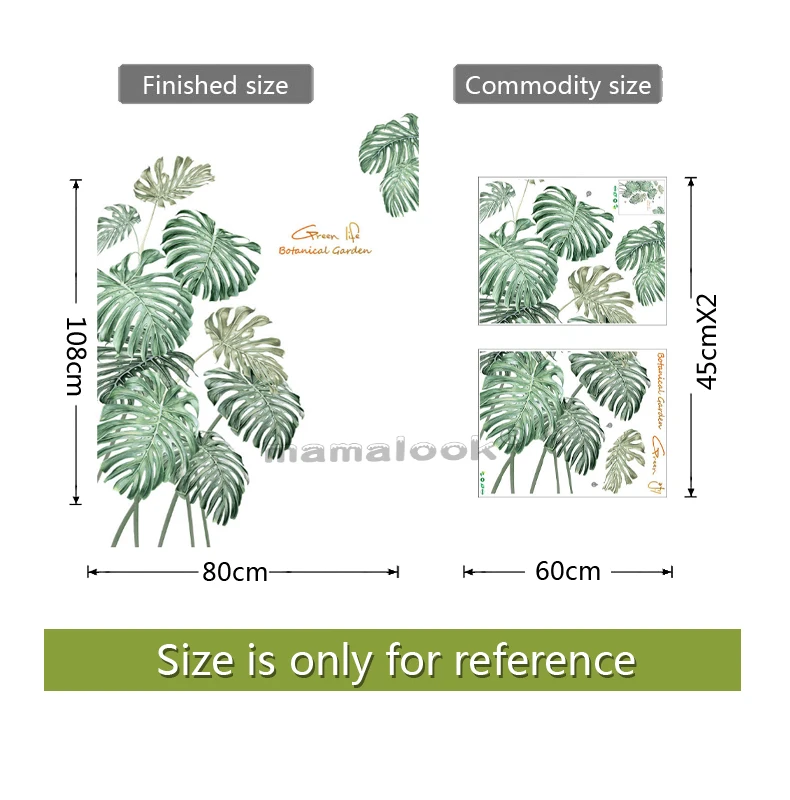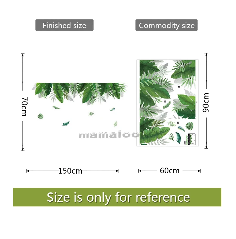 Тропические зеленые листья, настенные наклейки для гостиной, спальн...