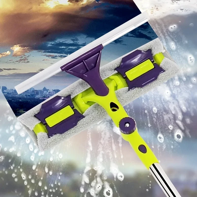 Длинная ручка щетка для очистки стекла очиститель Стекло Ракель телескопический стержень Вращающаяся головка с чистящей тканью резиновые стеклоочистители