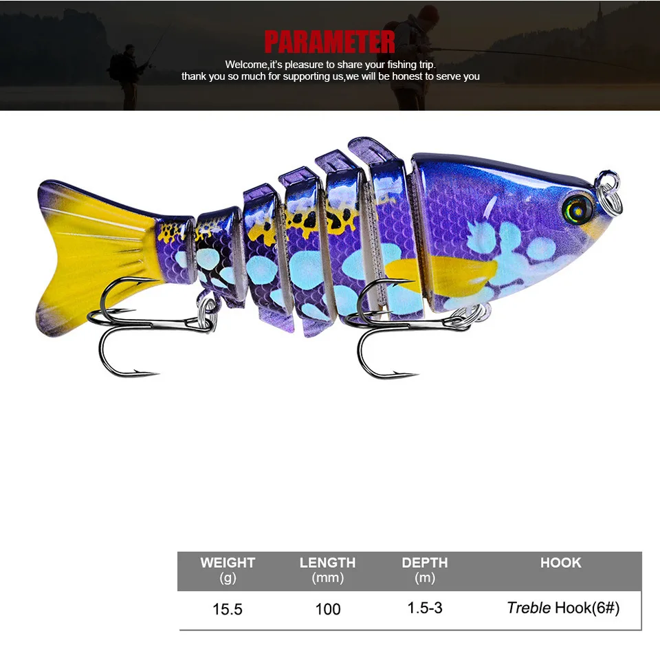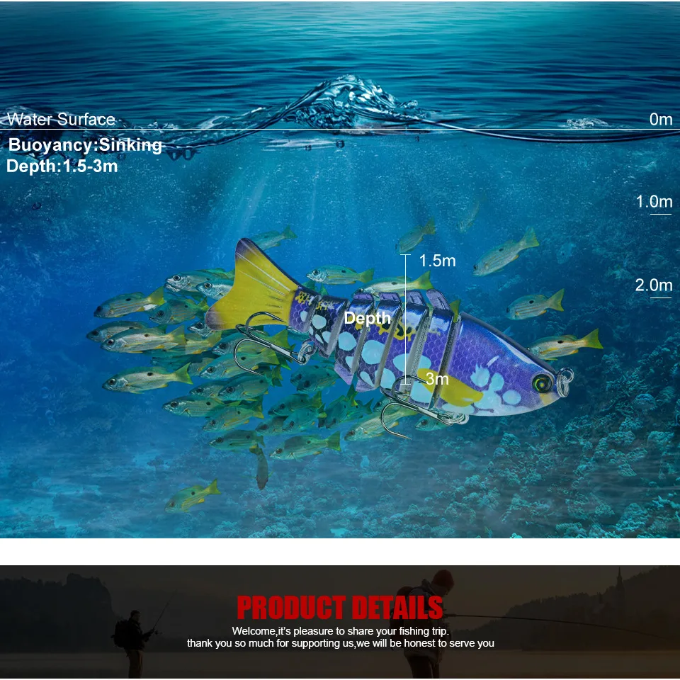 1 шт. Подводные воблеры, рыболовные приманки с шарнирным соединением, 100 мм15 г, реалистичные 7-сегментные искусственные приманки для карпа