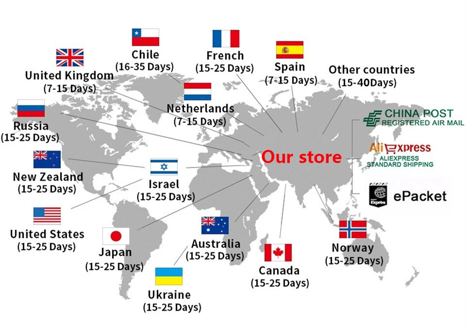 Есть 3 основных способа доставки, AliExpress Стандартная доставка, Почта Китая Зарегистрированная воздушная почта и ePacket.