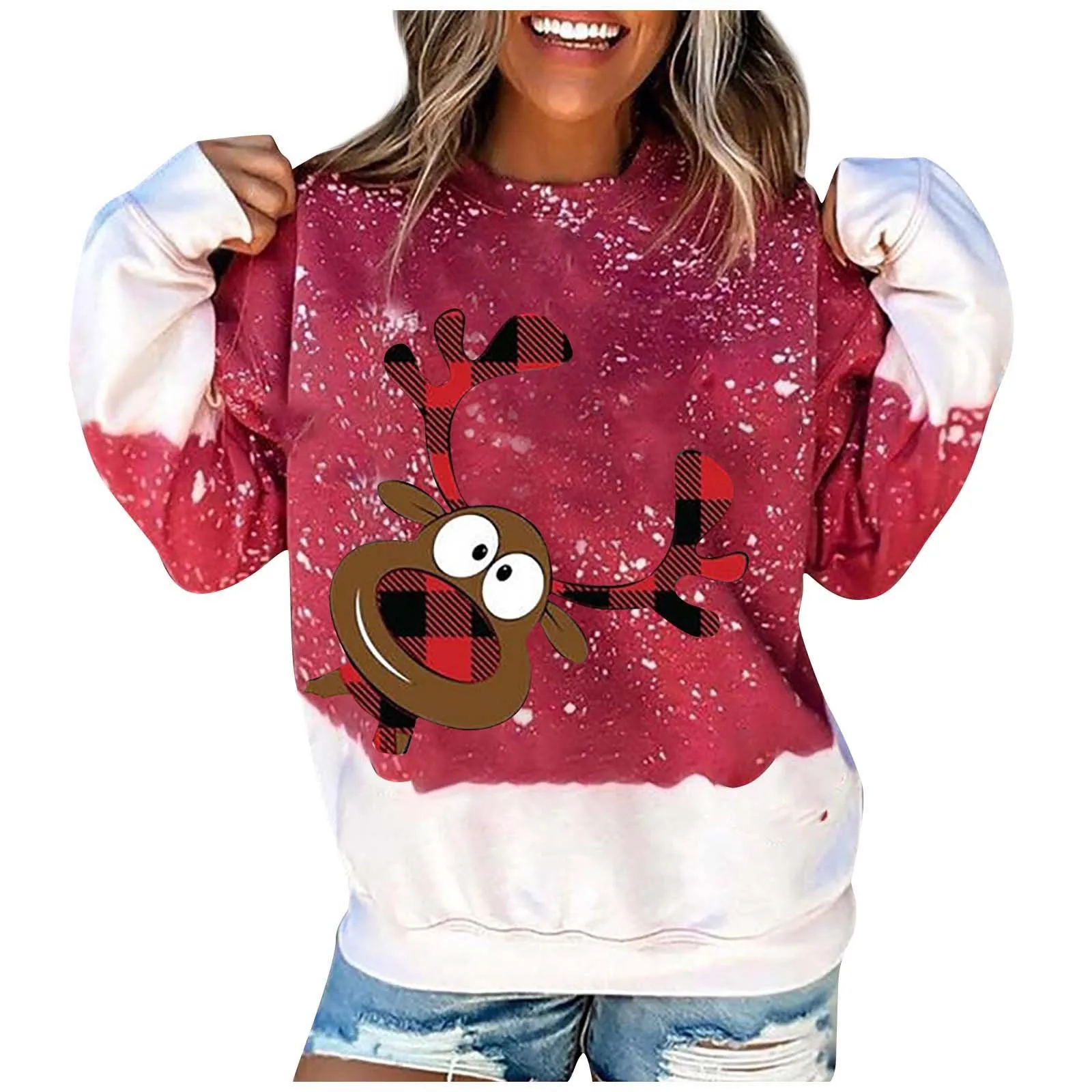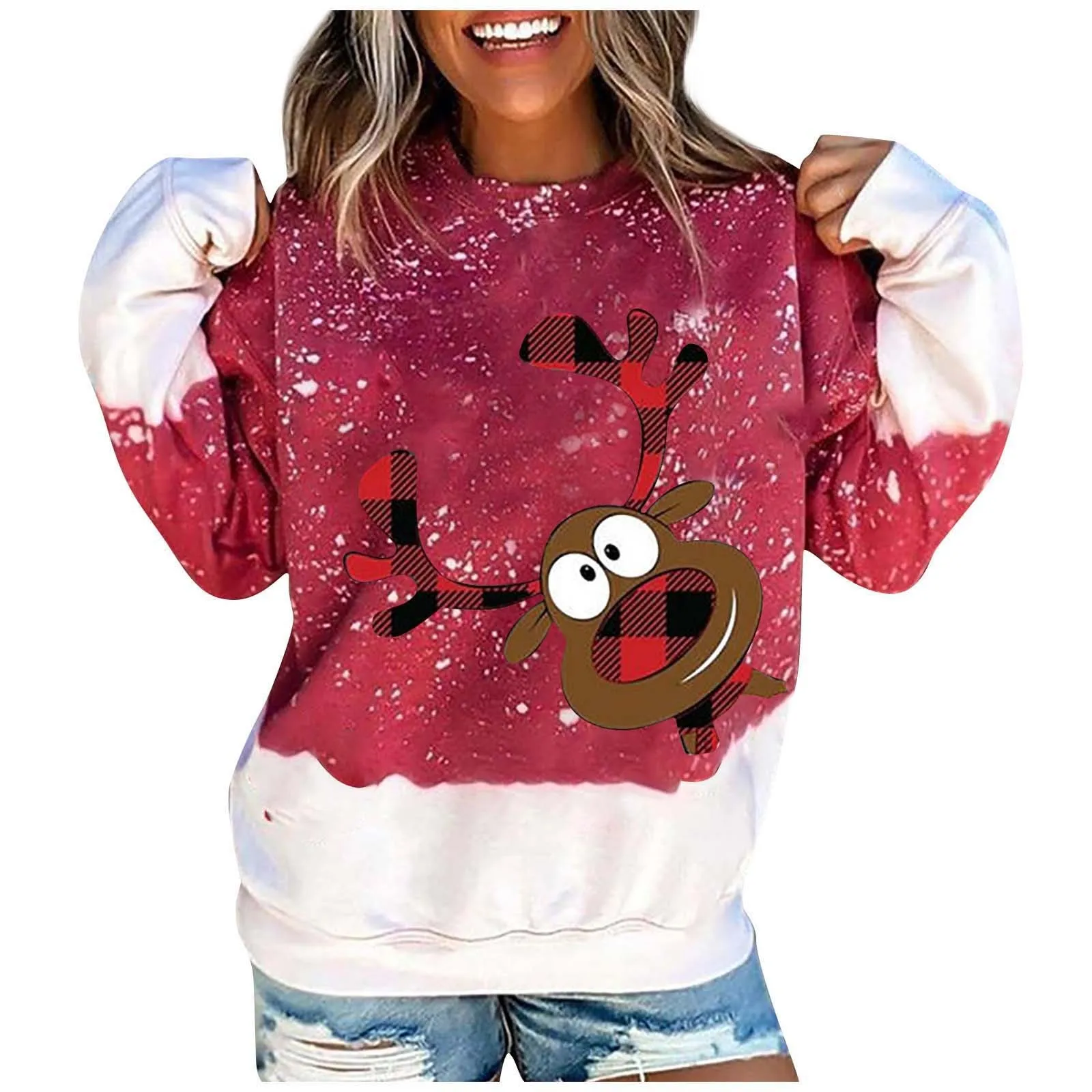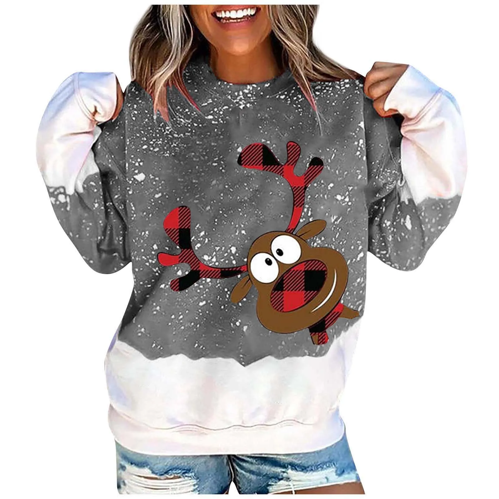 Популярный Рождественский женский свитер с рождественским принтом Санта-Клауса, Рождественский вязаный пуловер с длинным рукавом и круглым вырезом, свитер, топ, джемпер, трикотажная одежда
