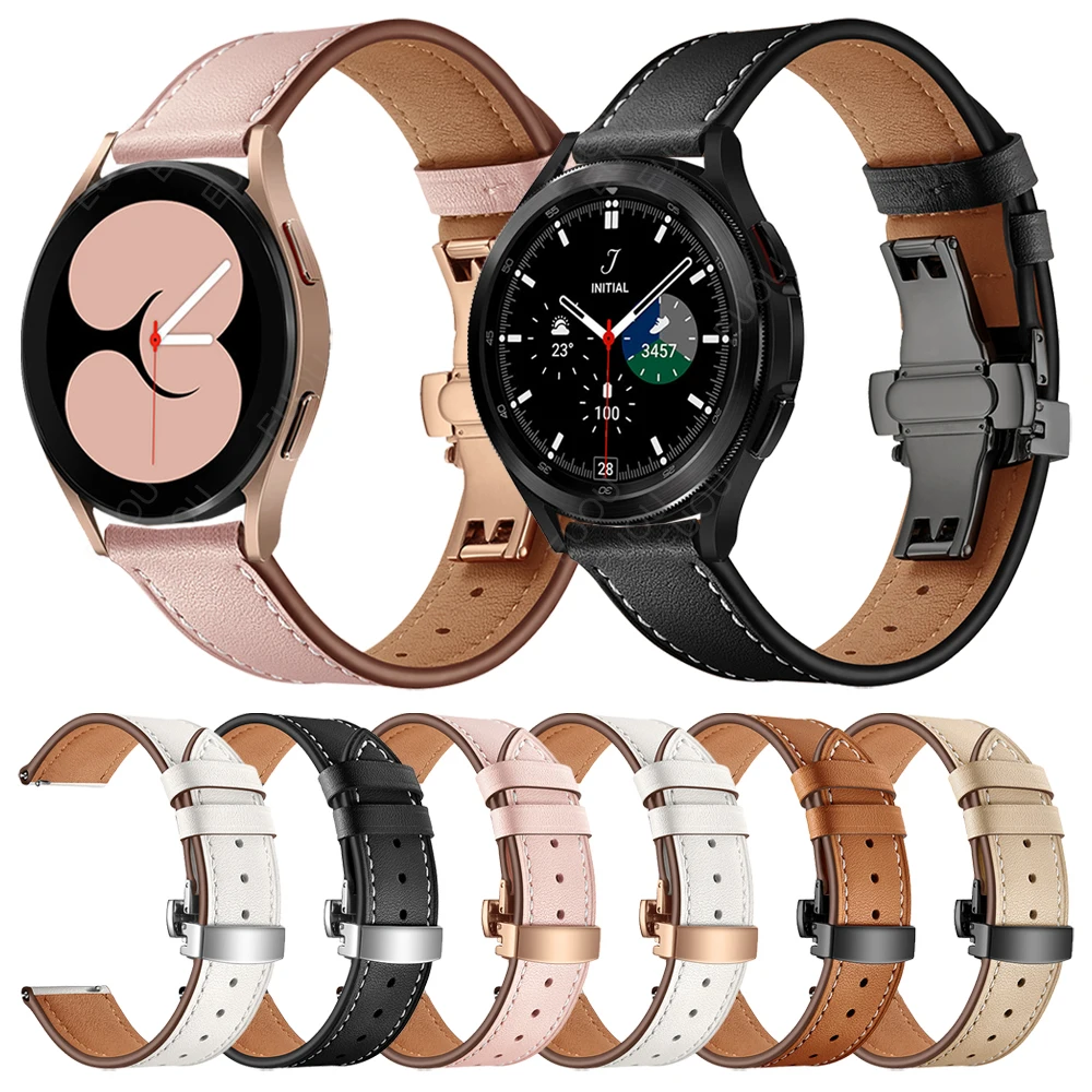Ремешок для Samsung Galaxy Watch 4, с пряжкой-бабочкой, кожаный, 44 мм, 40 ммGalaxy Watch 4 classic 42 мм, 46 ммActive 2
