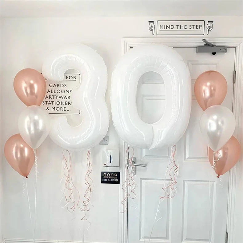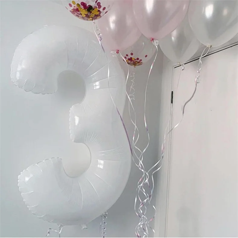 Воздушные шары, фольгированные, 3040 дюймов, белые цифры, 0, 1, 2, 3, 4, 5, 6, 7, 8, 9, для первого дня рождения, украшения детский душ, день рождения