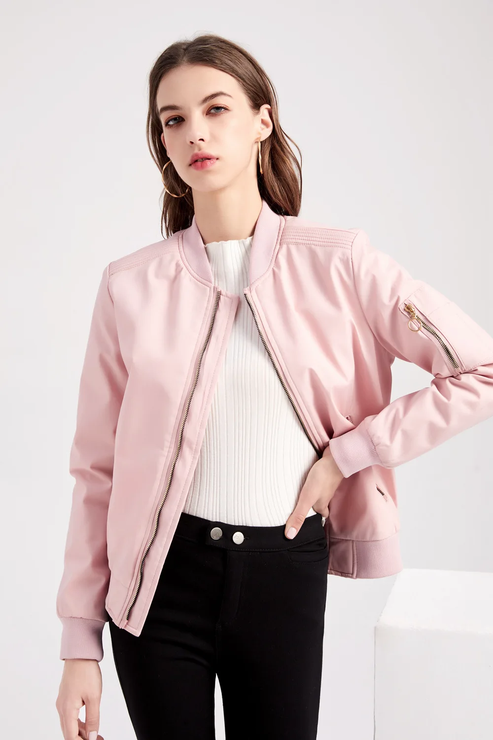 Куртка-бомбер Женская Весенняя, розовая, теплая, с длинным рукавом,...