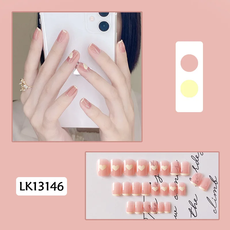 24 шт. короткие ногти для женщин простой градиентный лук жемчуг сти...