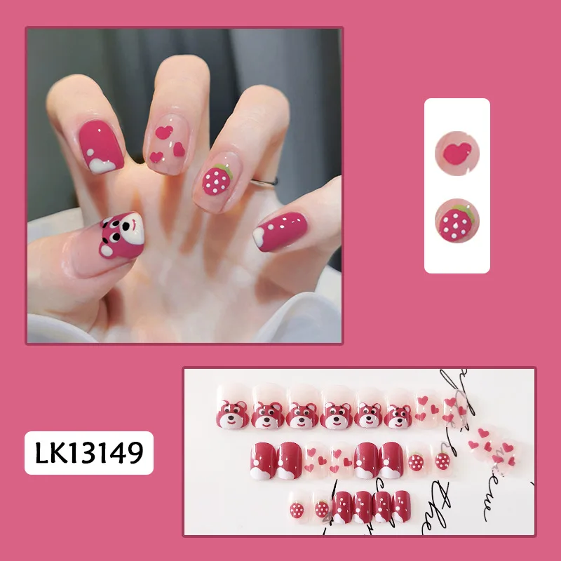 Короткие накладные ногти для женщин с изображением коровы из мультфильма, ноготь с леопардовым принтом медведя, накладные ногти, полное покрытие, накладные ногти, нажмите на ногти, Прямая поставка
