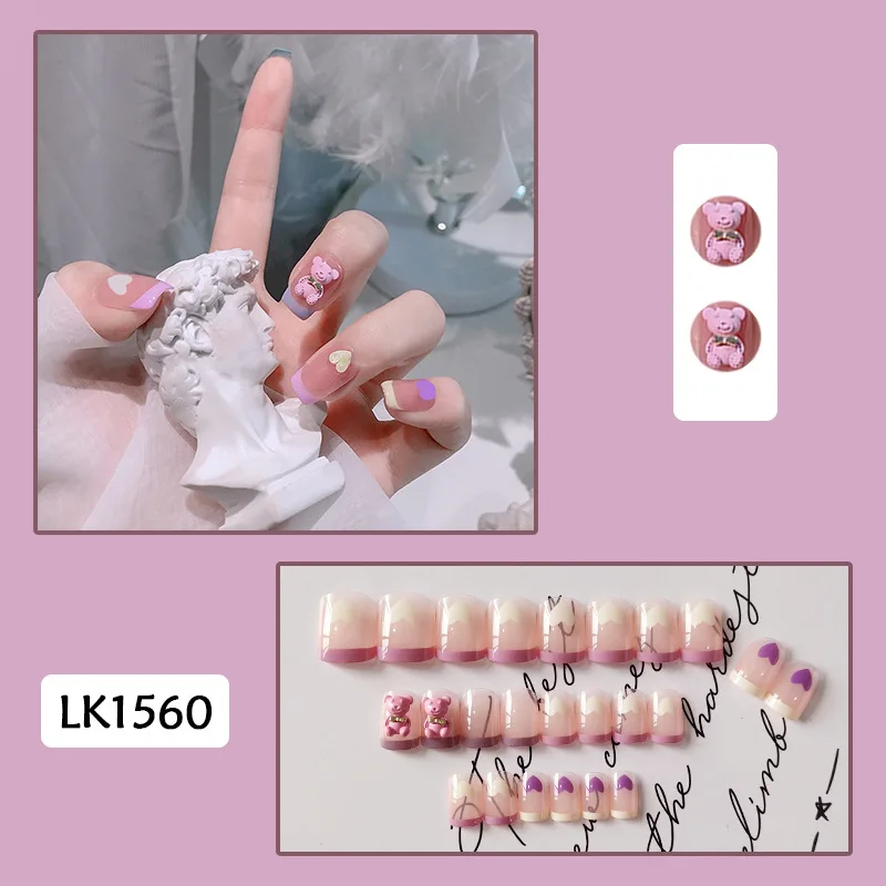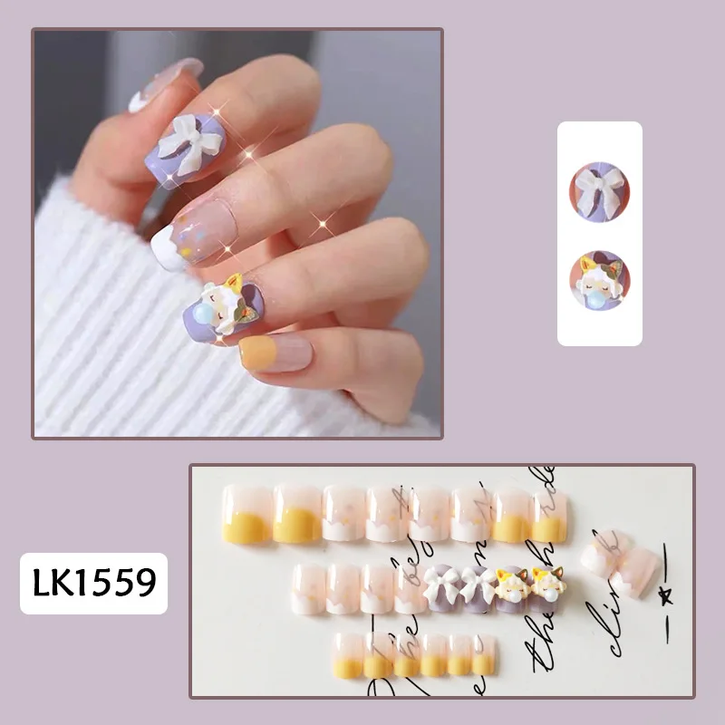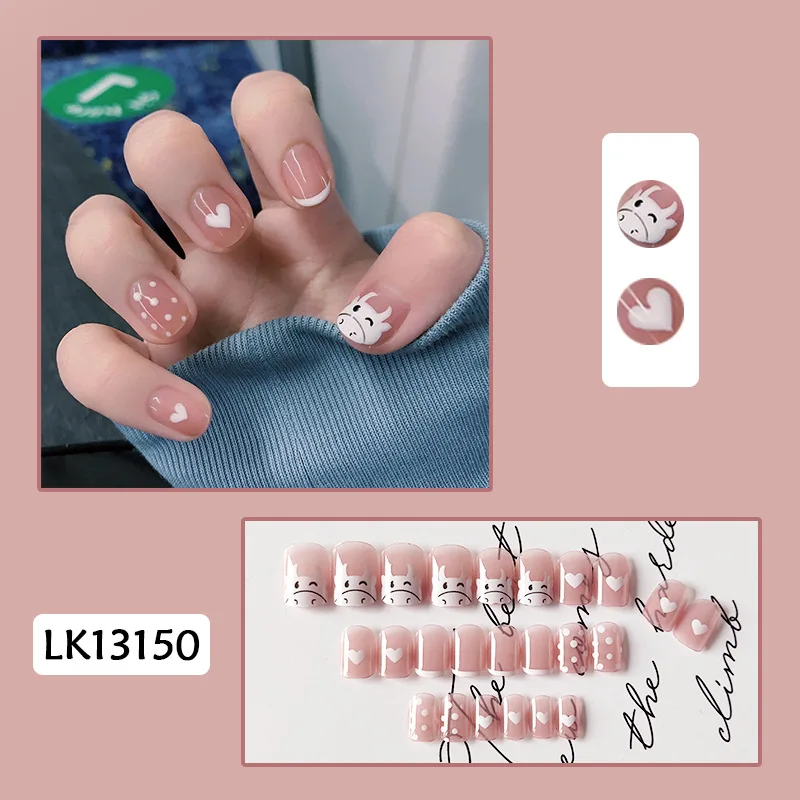 Короткие накладные ногти с мультяшной коровой для женщин носимые накладные ногти с медведем и леопардом накладные ногти с полным покрытием Накладные ногти накладные ногти для дизайна ногтей Прямая поставка