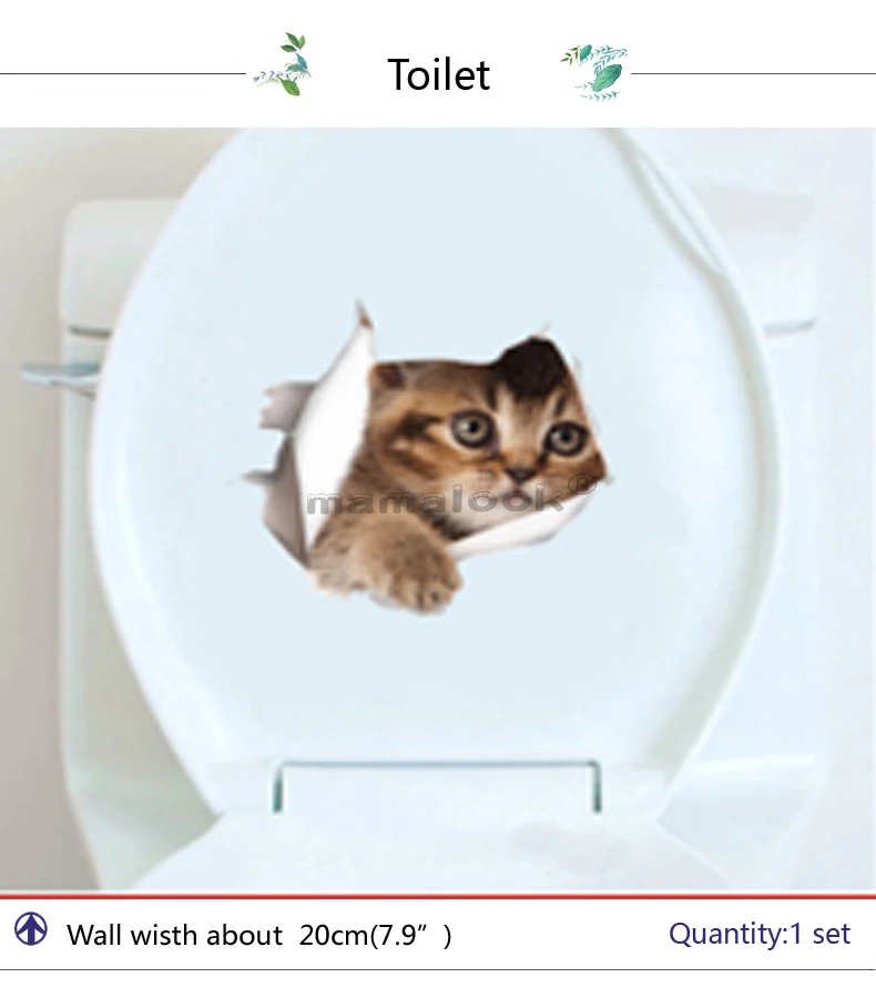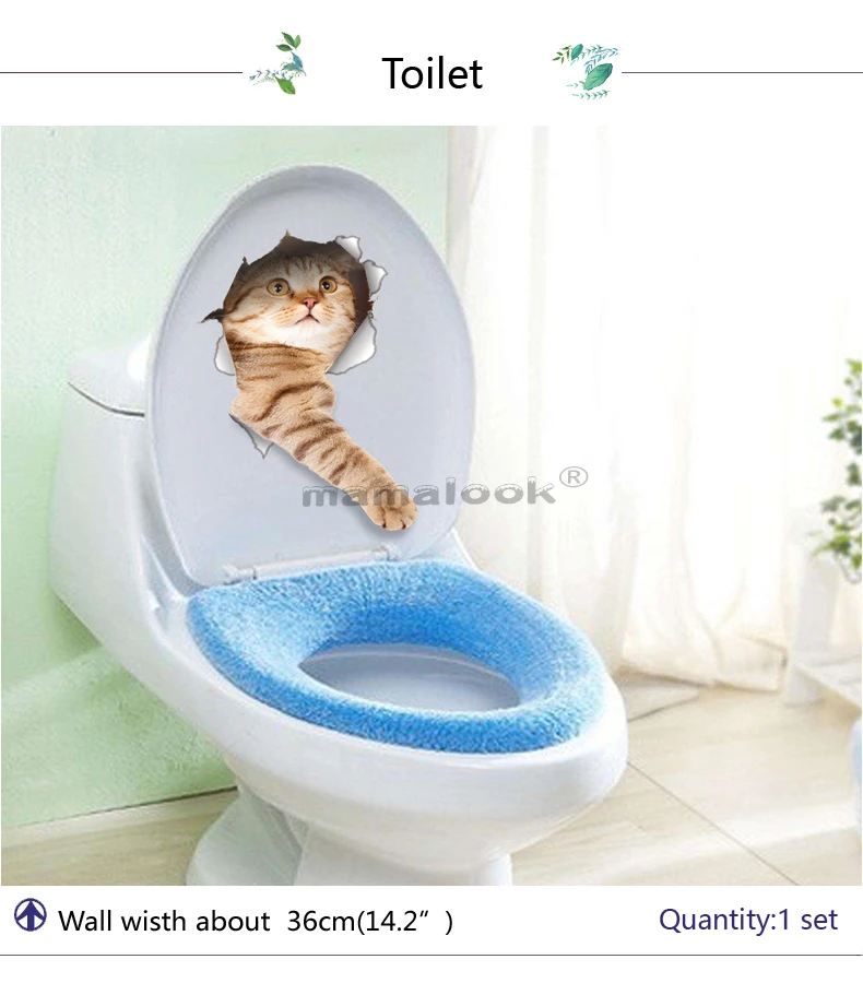 Наклейки на унитаз, стикер на стену с кошкой дюйма, с изображением ...