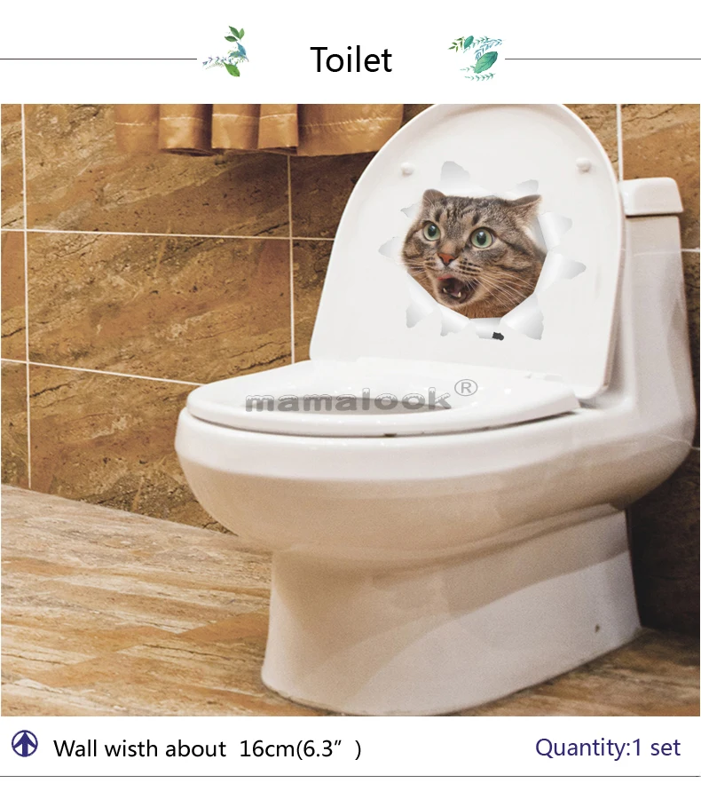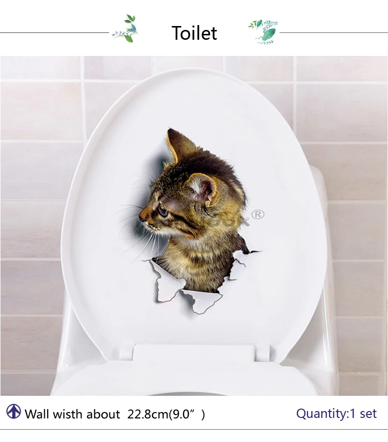 3D наклейки на стену в виде кошек, наклейки на унитаз с отверстием, яркие собаки, ванная комната для украшения дома, наклейки с животными, постер