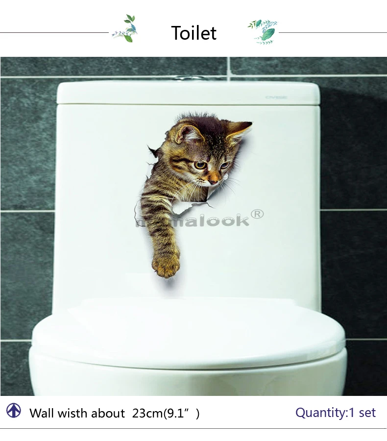 Горячая Распродажа милый 3D стикер на стену с кошкой ванная комната...