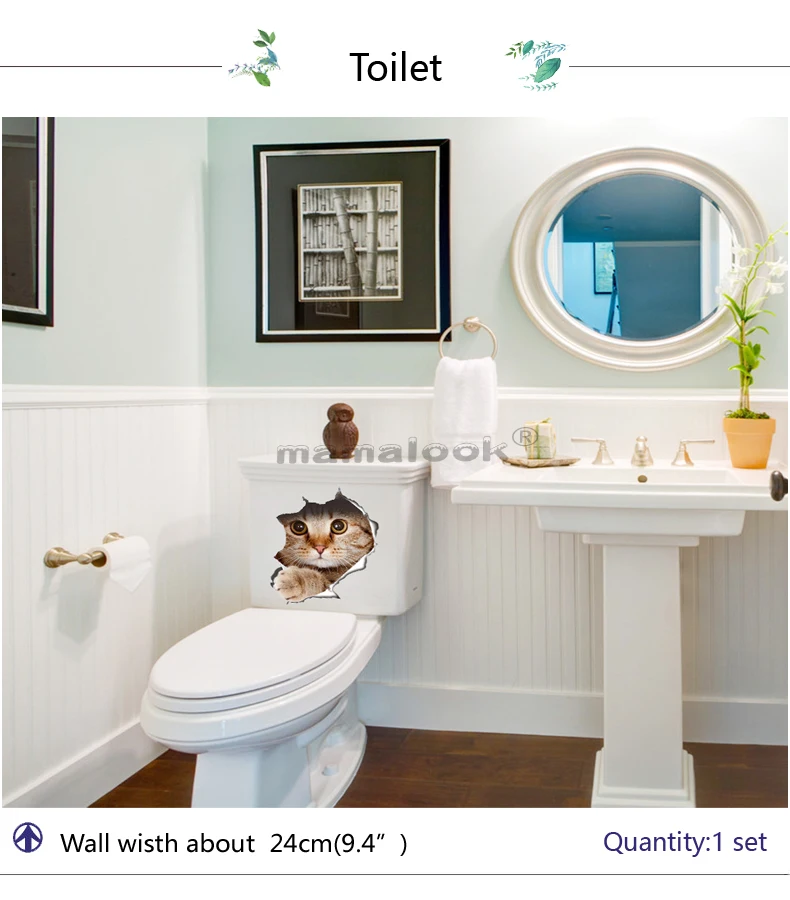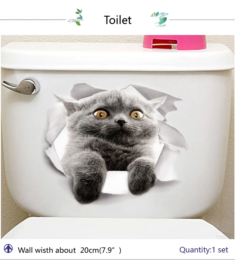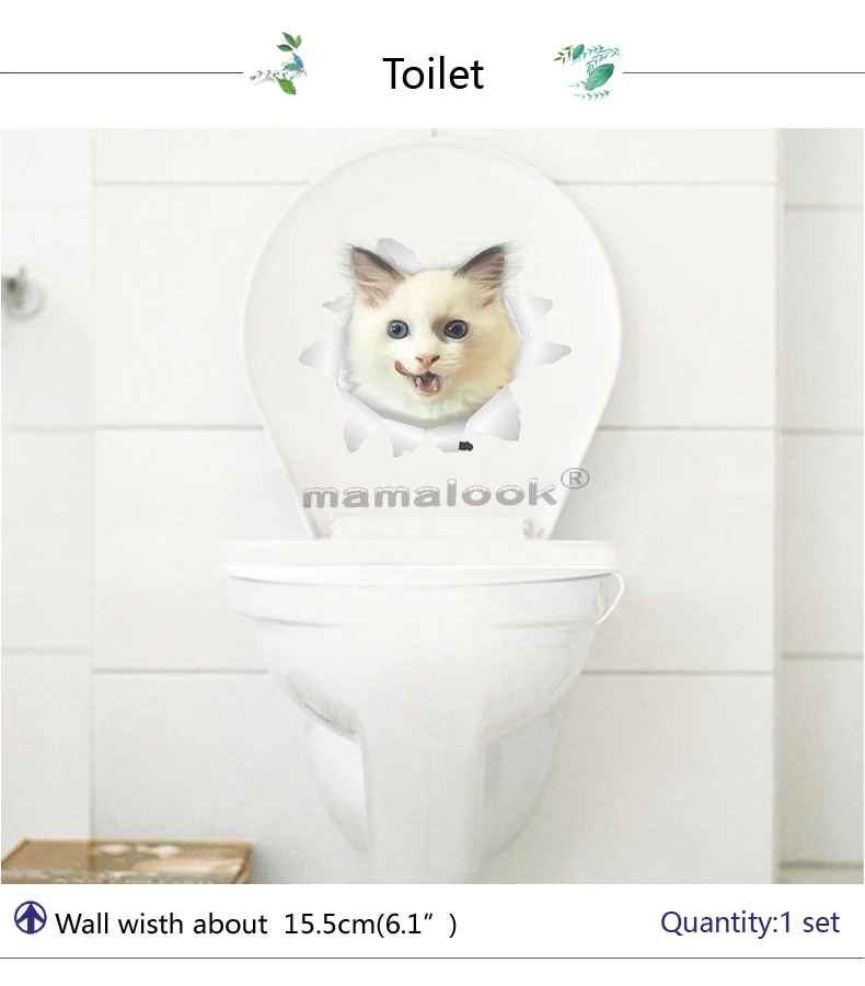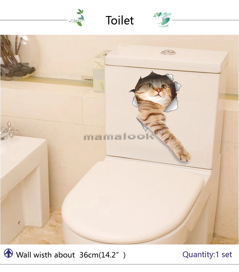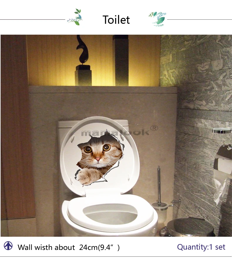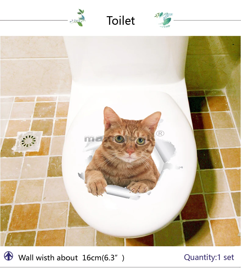 Милые 3D наклейки на стену с изображением кота, для ванной, туалета...