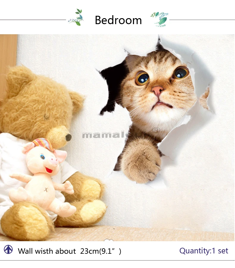 3D кошка наклейки на стену ванная комната украшение гостиной настен...