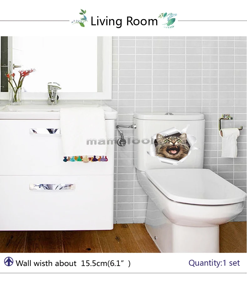 Милый 3D стикер на стену с кошкой Ванная комната туалет Гостиная до...