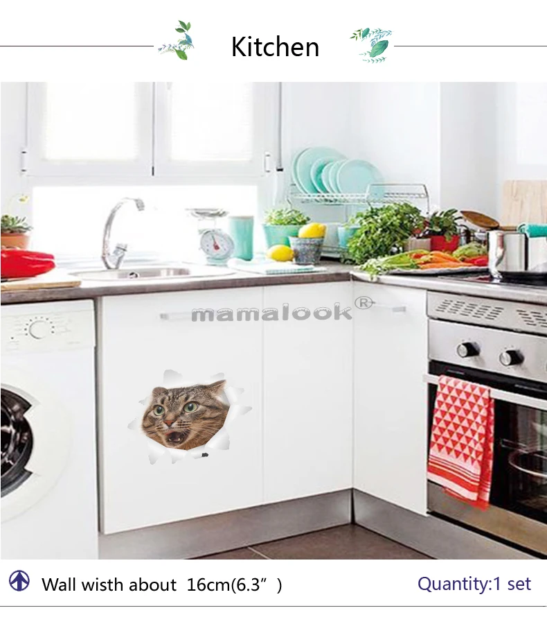 Домашний Декор 3D отверстие кот животное туалет наклейки для украше...
