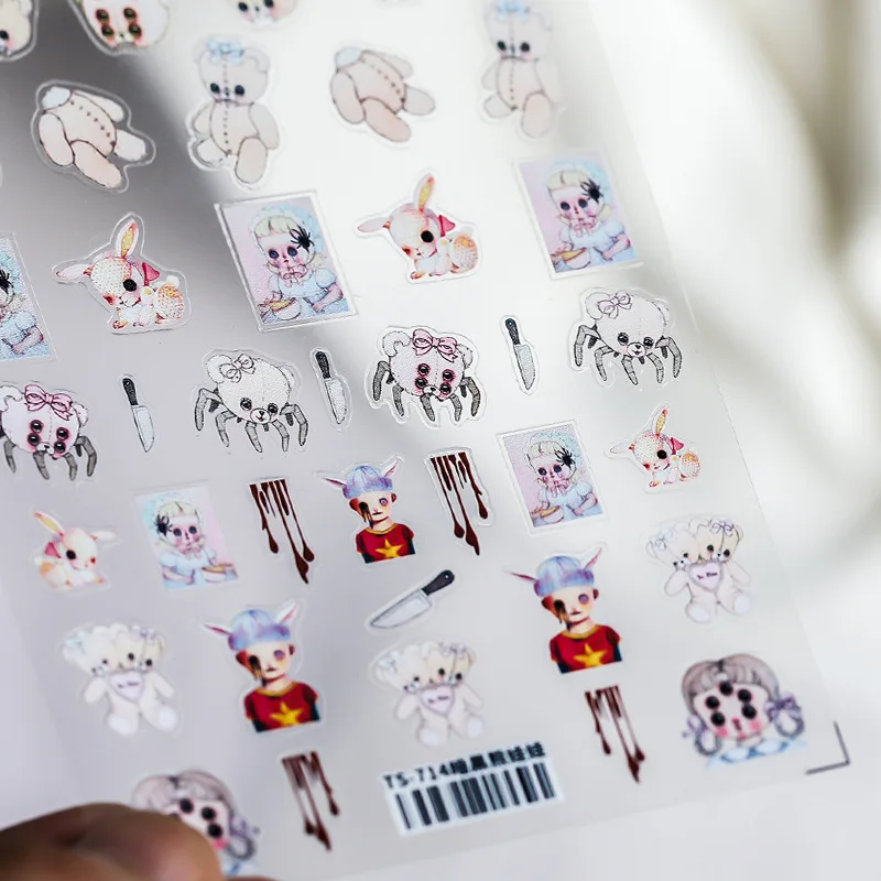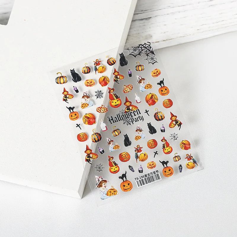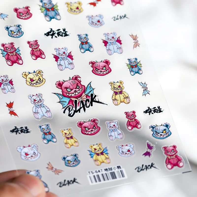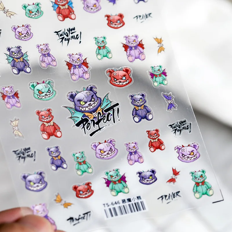 5D рельефная наклейка для ногтей гримаса девушка s глаза Черная летучая мышь наклейки для ногтей Сделай Сам Хэллоуин наклейка для ногтей художественные украшения