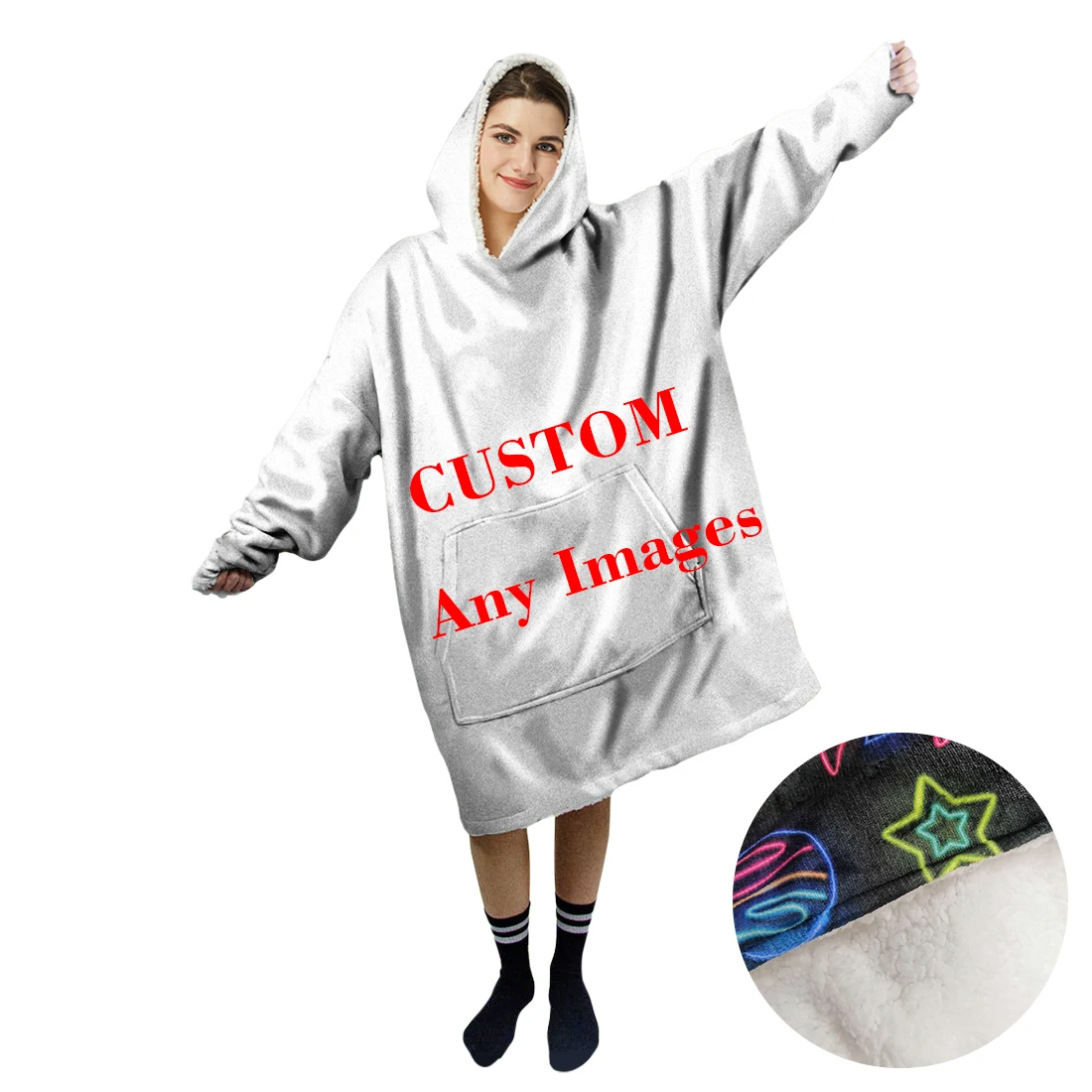 Прямая поставка, Флисовое одеяло с 3D принтом на заказ, шерпа с рукавом, супермягкое теплое уличное карманное худи, одеяло для взрослых с капюшоном и ТВ
