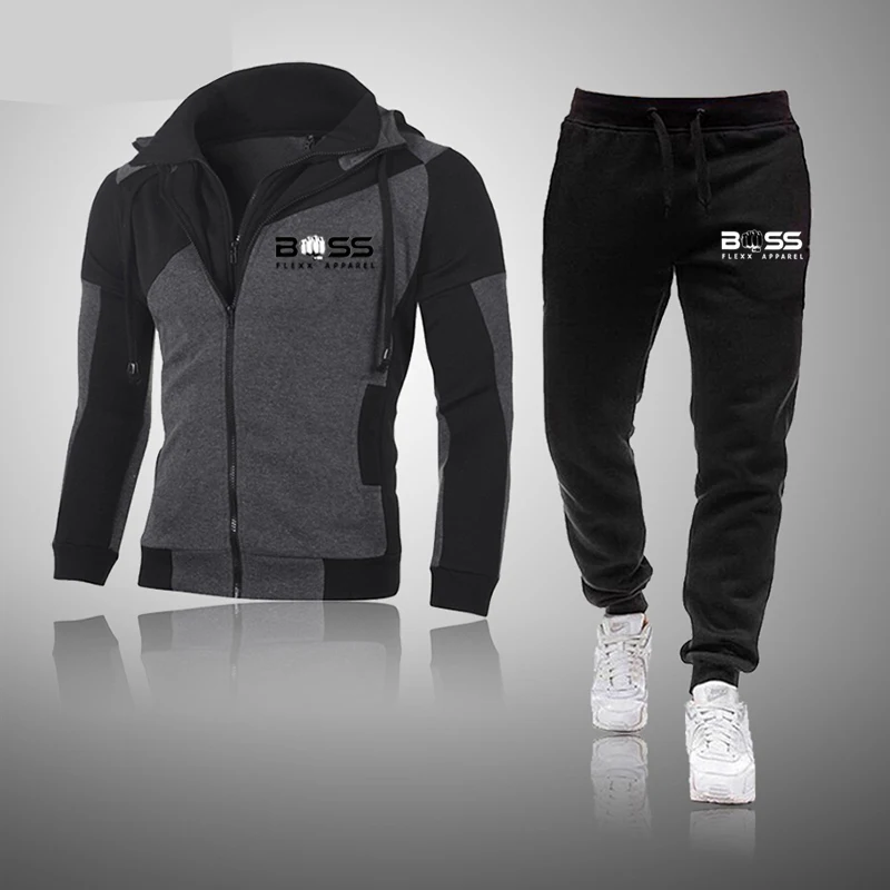 Мужской спортивный костюм на молнии, повседневный комплект из худи ...