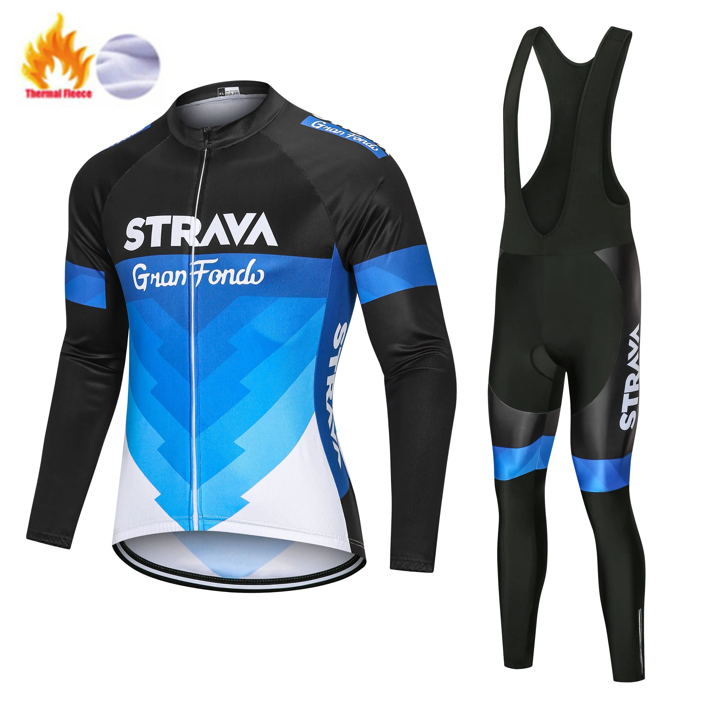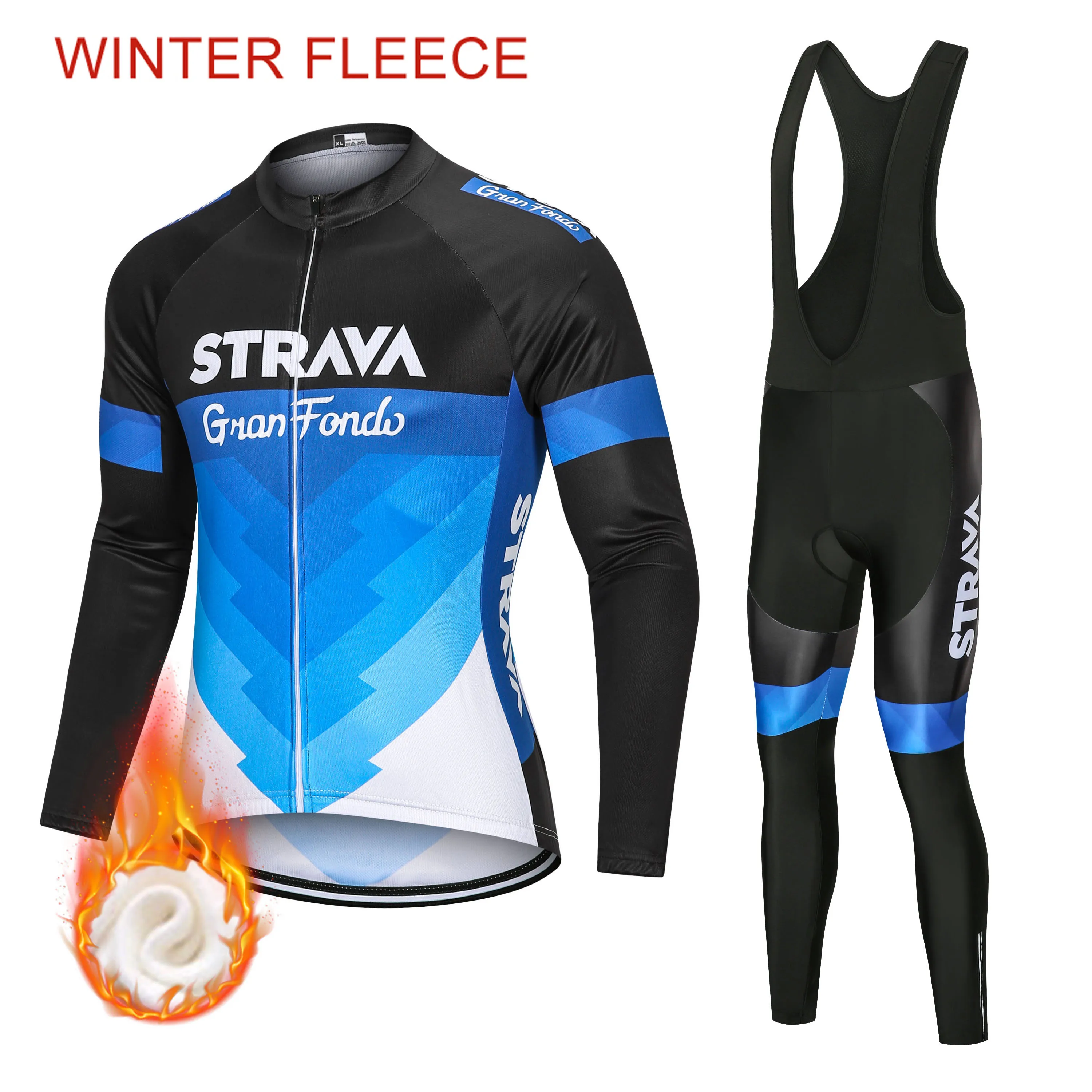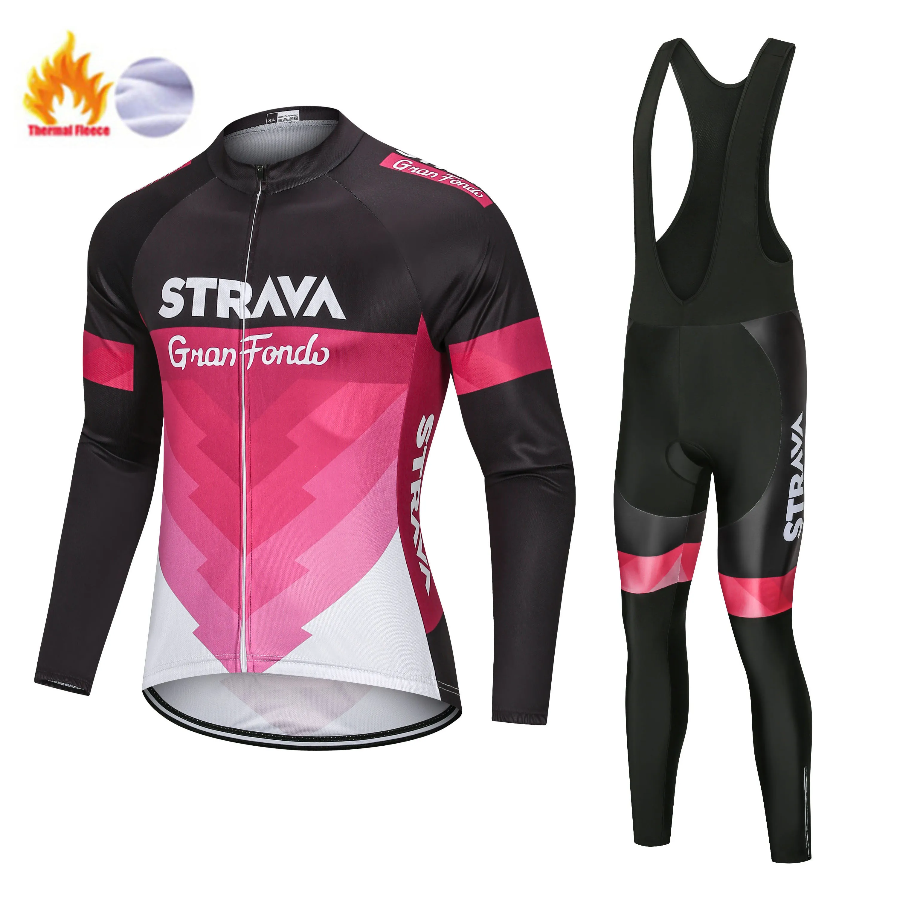 Трикотажный комплект для велоспорта STRAVA Team, Зимняя Теплая Флис...