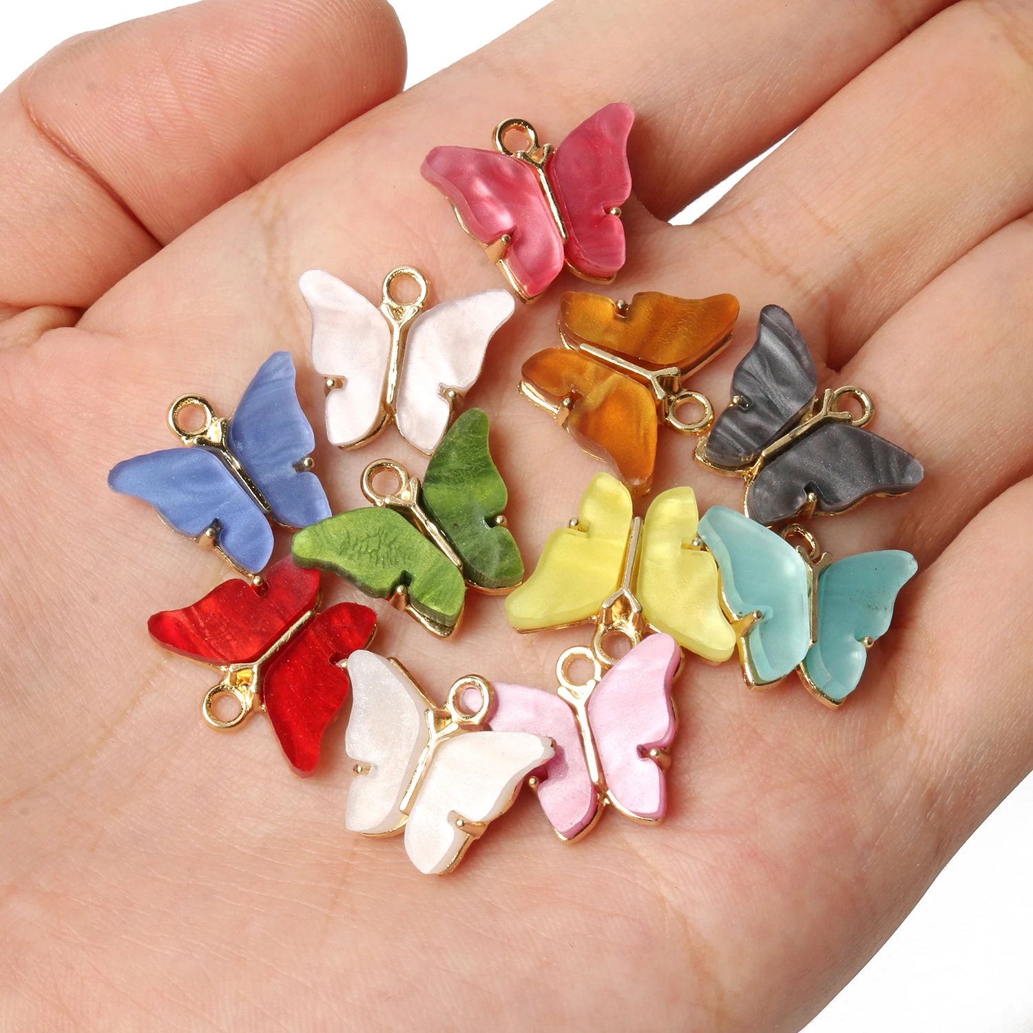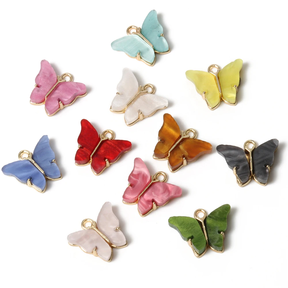 10 шт., разноцветные акриловые серьги-бабочки, 16 х14х4 мм