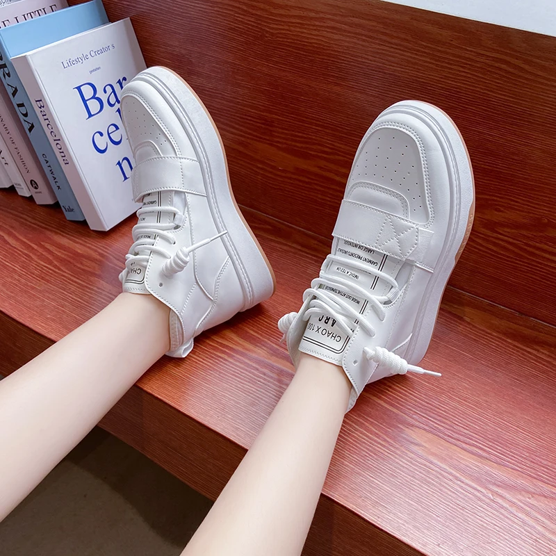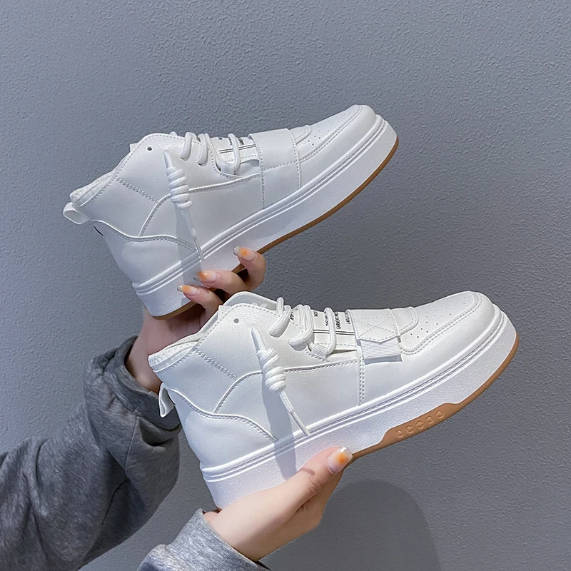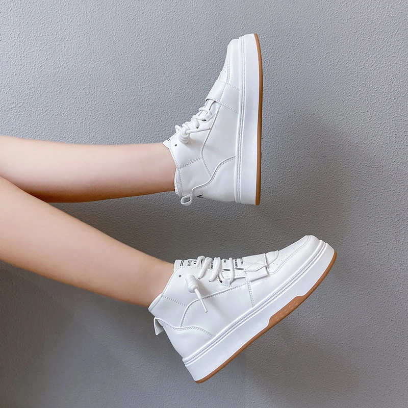 Повседневные высокие кроссовки; Женская Вулканизированная обувь; Коллекция 2021 года; Модная Уличная обувь на платформе со шнуровкой; Женская спортивная обувь; Цвет белый