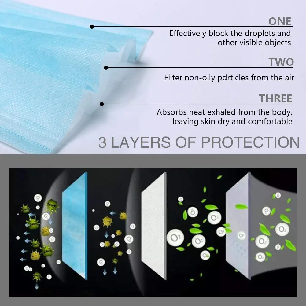 Одноразовая маска гражданского 3-х слойные ежедневная маскаПараметры продукта:Материал: трехслойный нетканый материалПодходящий сезон: Весна, Осень, Зима, ЛетоЦвет: синий, белый, черный, розовыйСтиль маски: Тип ухаРазмер: один размерОсобенности продукта:1. Новая ткань PP Нетканая ткань, мягкая и чистая, удобная и дышащая2. Процесс бесшовной вязки3. Три раза дизайн, больше дышащего пространства на лице4. Пластиковая полоска для носа, алюминиево-пластиковая полоска для носа,5. Многослойная защита для вашего дыхательного здоровьяКак носить маску:1. Закройте рот и нос и Повесьте два боковых ремня на уши2. Фиксация моста носа в соответствии с формой носа предотвращает загрязнения воздуха от входа.3. Пожалуйста, потяните маску к нижней челюсти, чтобы немедленно предоставить трехмерное дышащее пространство.Пожалуйста, обратите внимание, что указанный Товар производится и распространяется за рубежом и в соответствии с законодательством страны его происхождения