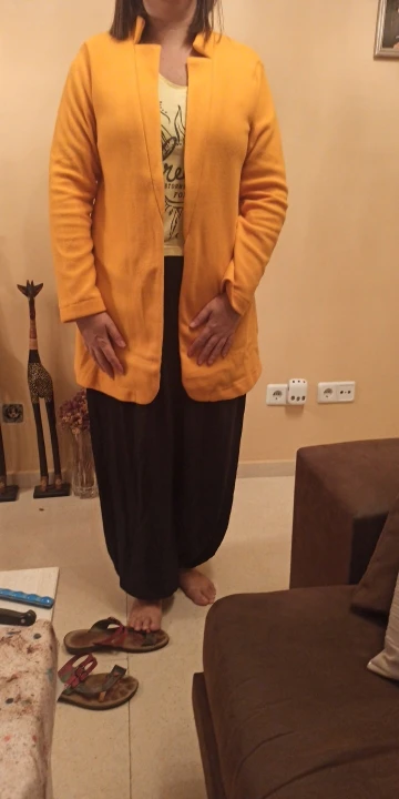 Статья не соответствует, как на фото, это не пиджак, а разочарованный поврежденный свитер, но служит пижамным жилетом.