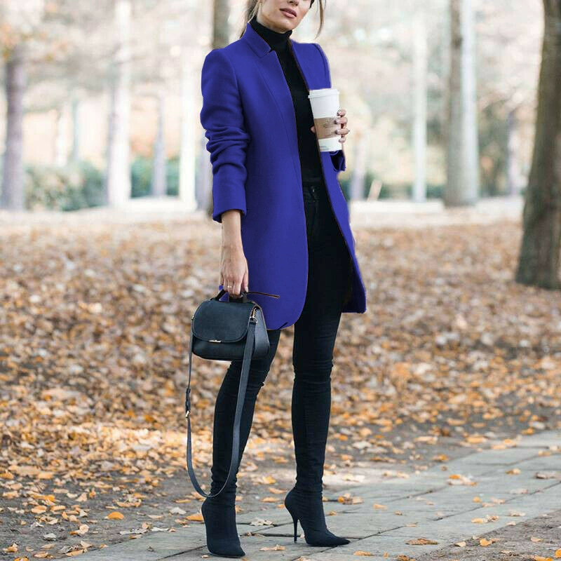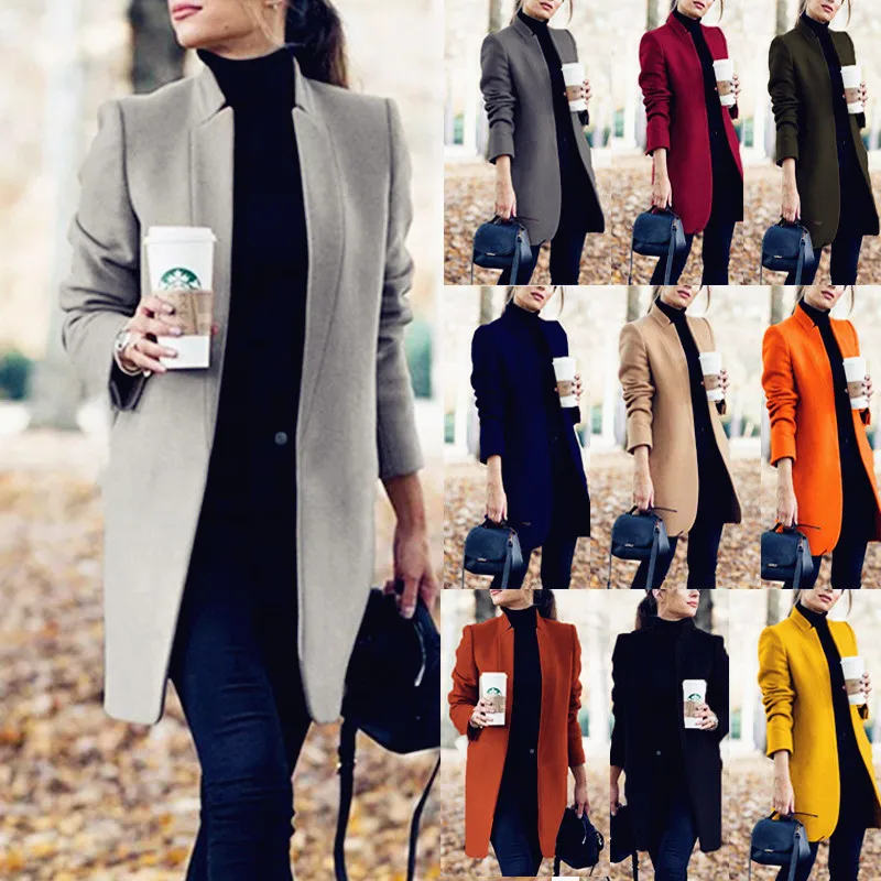Пальто женское Шерстяное, с воротником-стойкой, Осень-зима, 2021