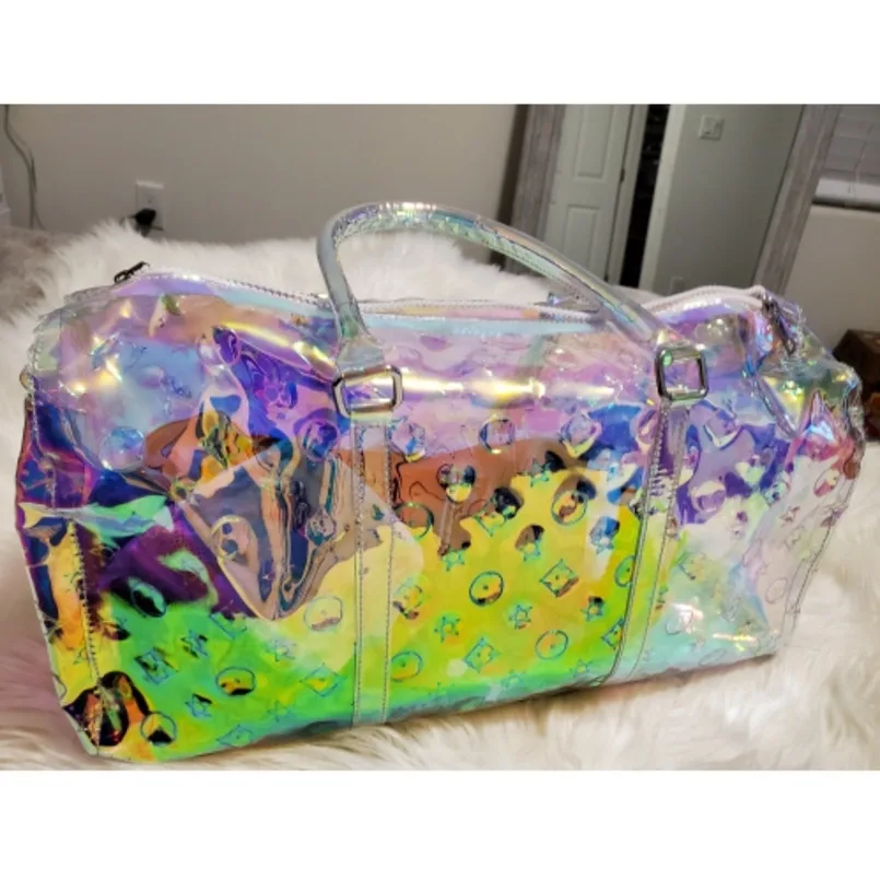 Голографическая женская сумка, прозрачная дорожная сумка, брендовая...