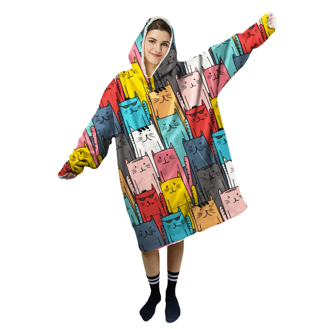 3D печать на заказ микрофибра плюшевое шерпа одеяло с рукавом супер мягкое теплое наружное карманное худи для взрослых зимнее с капюшоном ТВ одеяло