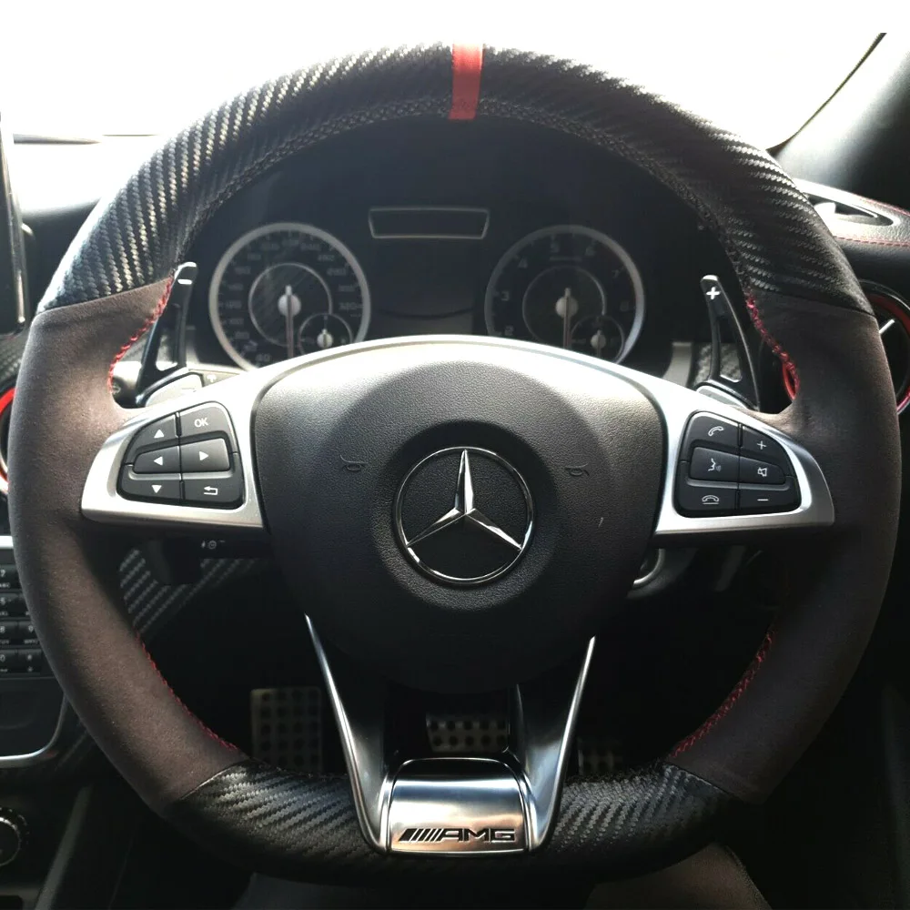 3D-чехол на руль из углеродного волокна и черной замши для Mercedes Benz S-Class S500 2016 A-Class AMG A45