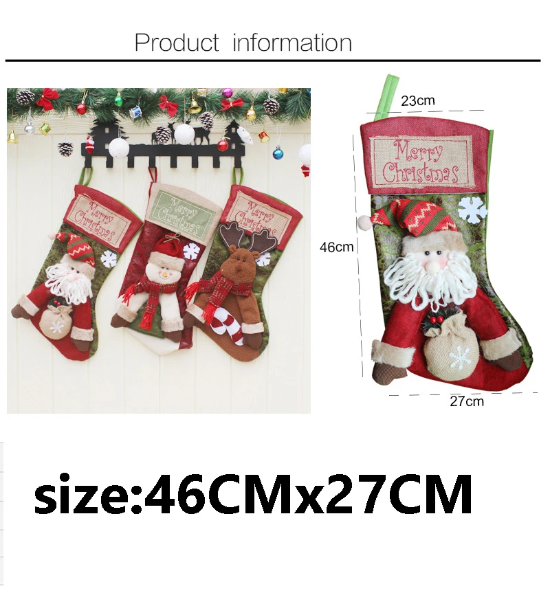 46 см x 27 см Новый Рождественский Подарочный пакет для носков рождественские украшения детский мешок для конфет рождественские чулки Рождественский кулон
