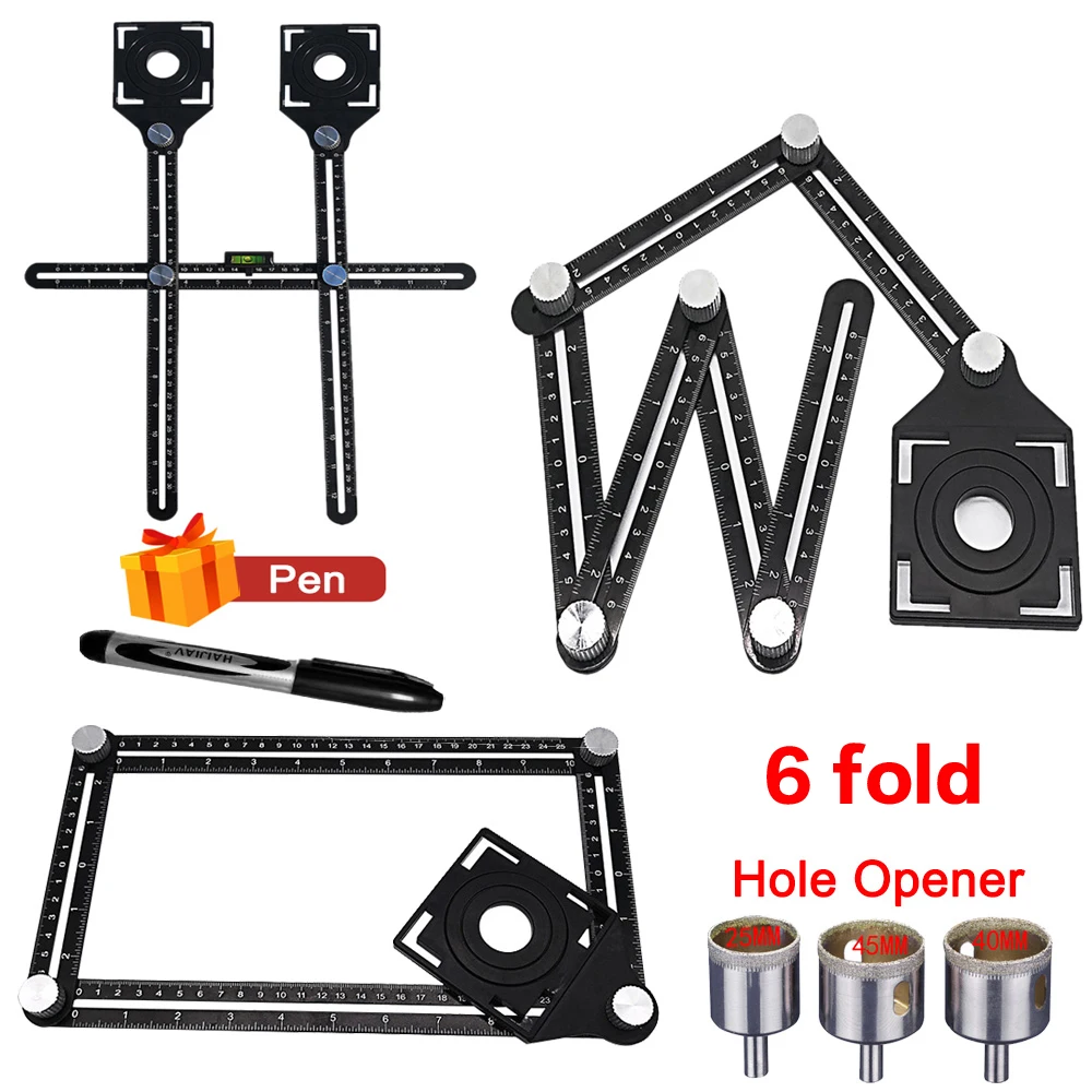 6-сторонняя фотовспышка из алюминиевого сплава, цельнометаллическая направляющая для сверления, многоугольный инструмент, измерительная линейка, перфорированная фотография