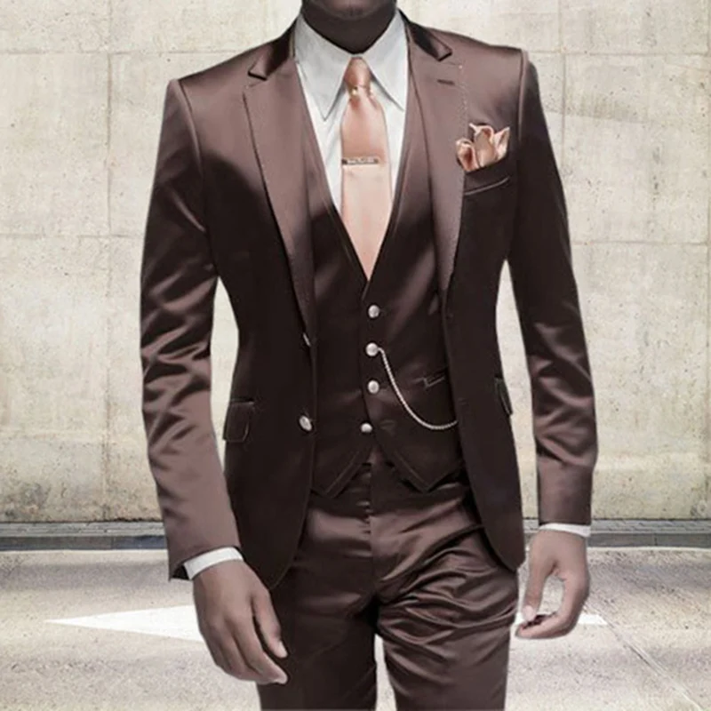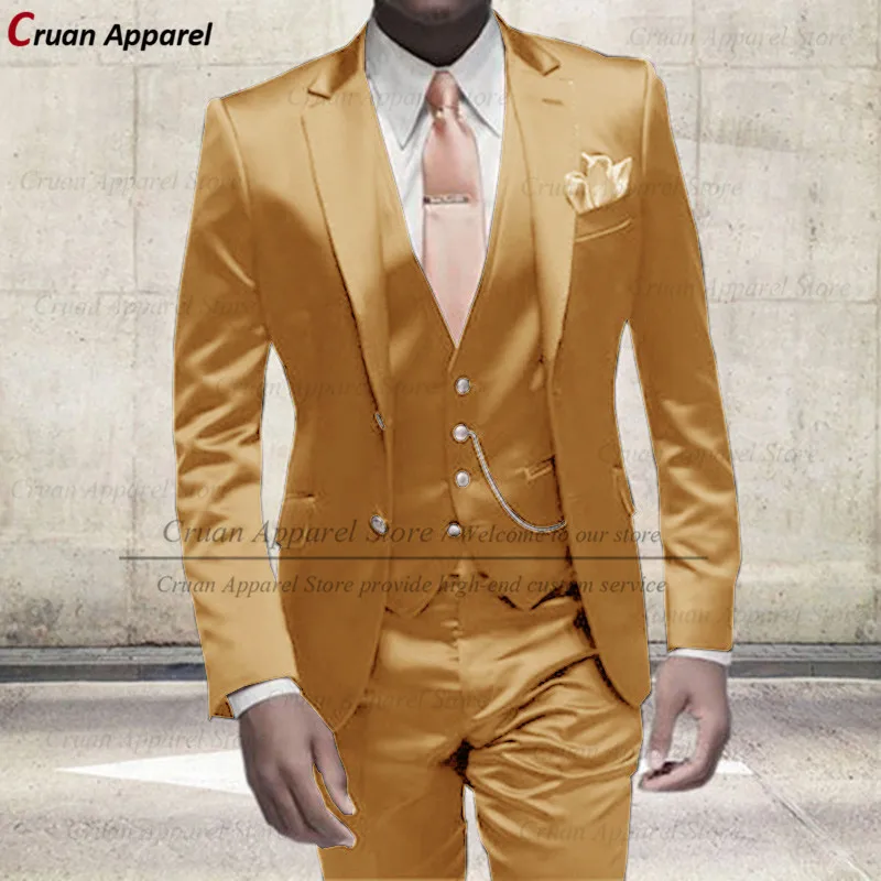 Индивидуальные коричневые блестящие бриджи для мужчин, облегающий костюм для выпусквечерние вечера, свадьбы, костюм жениха, платье, смокинг, золотой сценический Блейзер, жилет, брюки, комплект