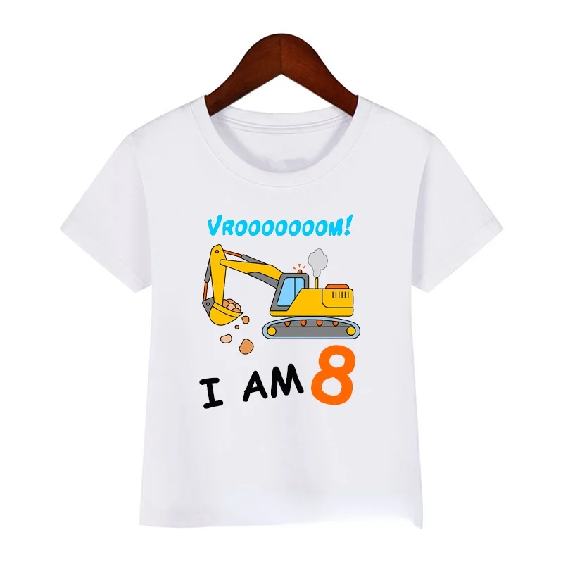 Бульдозер для мальчиков, с номером на день рождения 2-8, футболка с...
