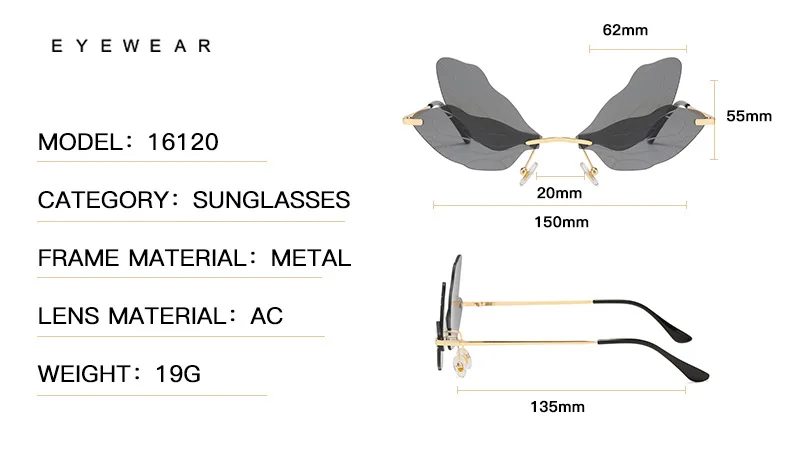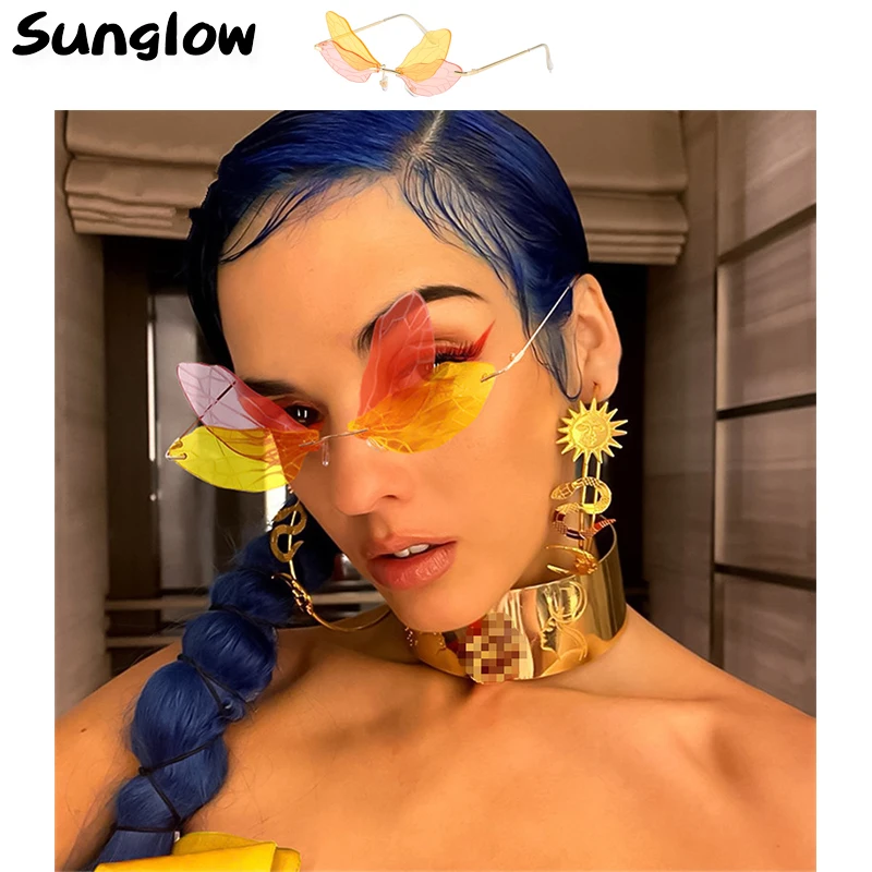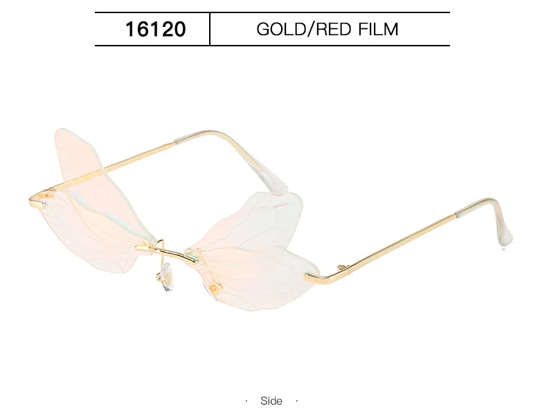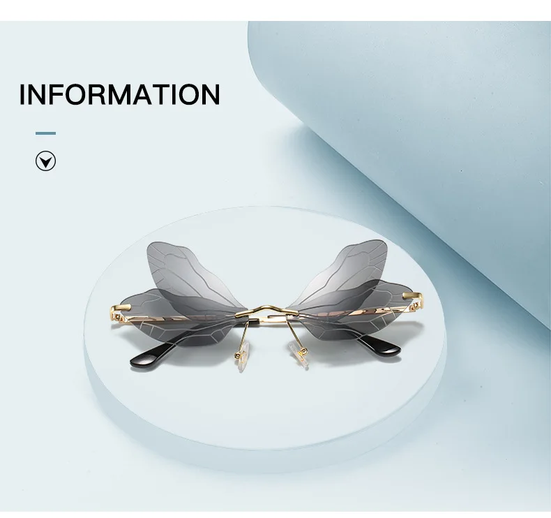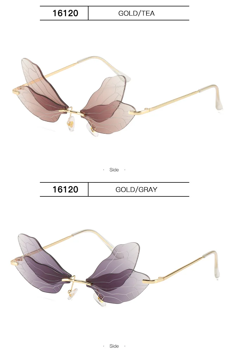 Солнцезащитные очки женские, без оправы, с металлической бабочкой